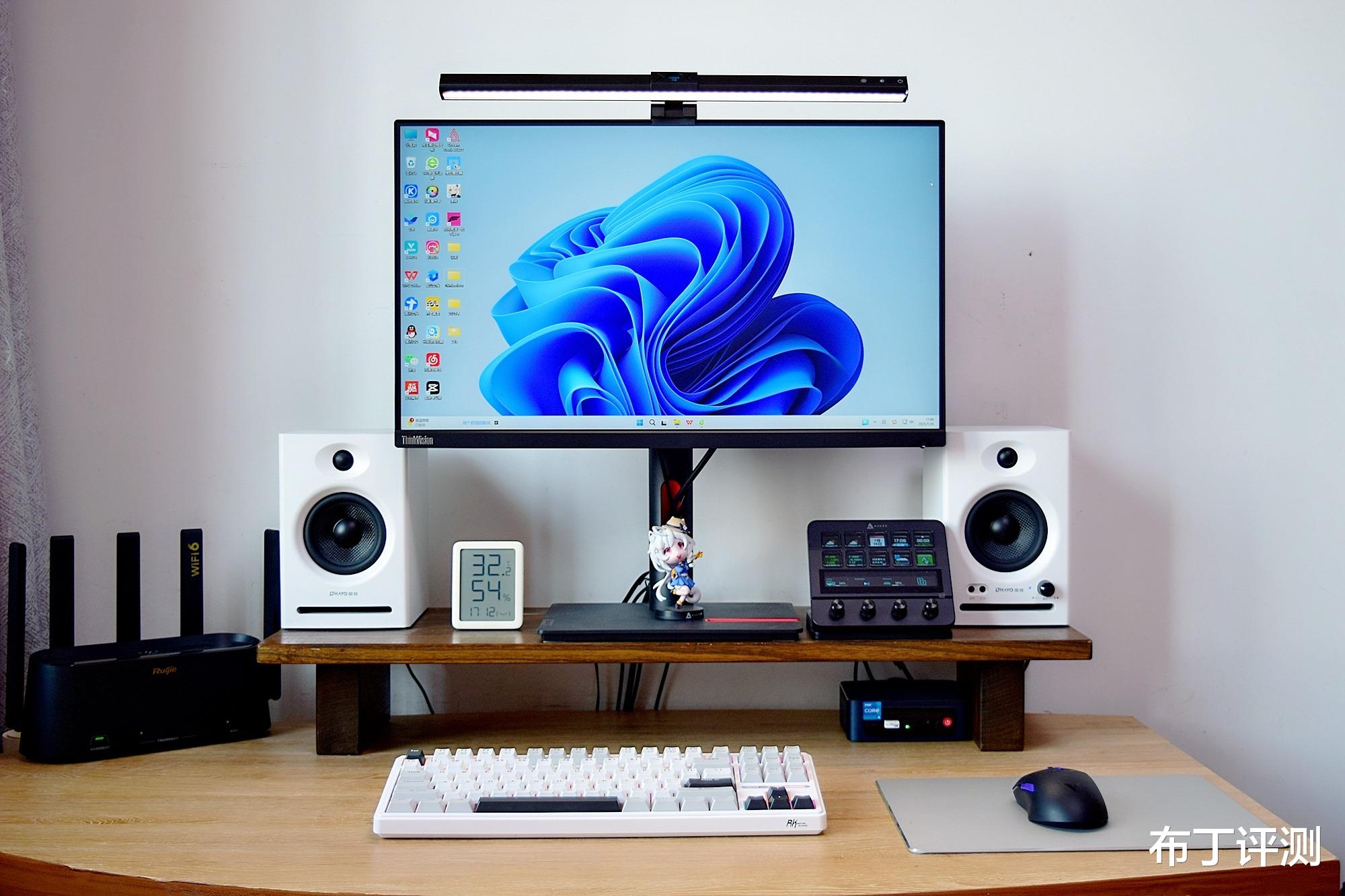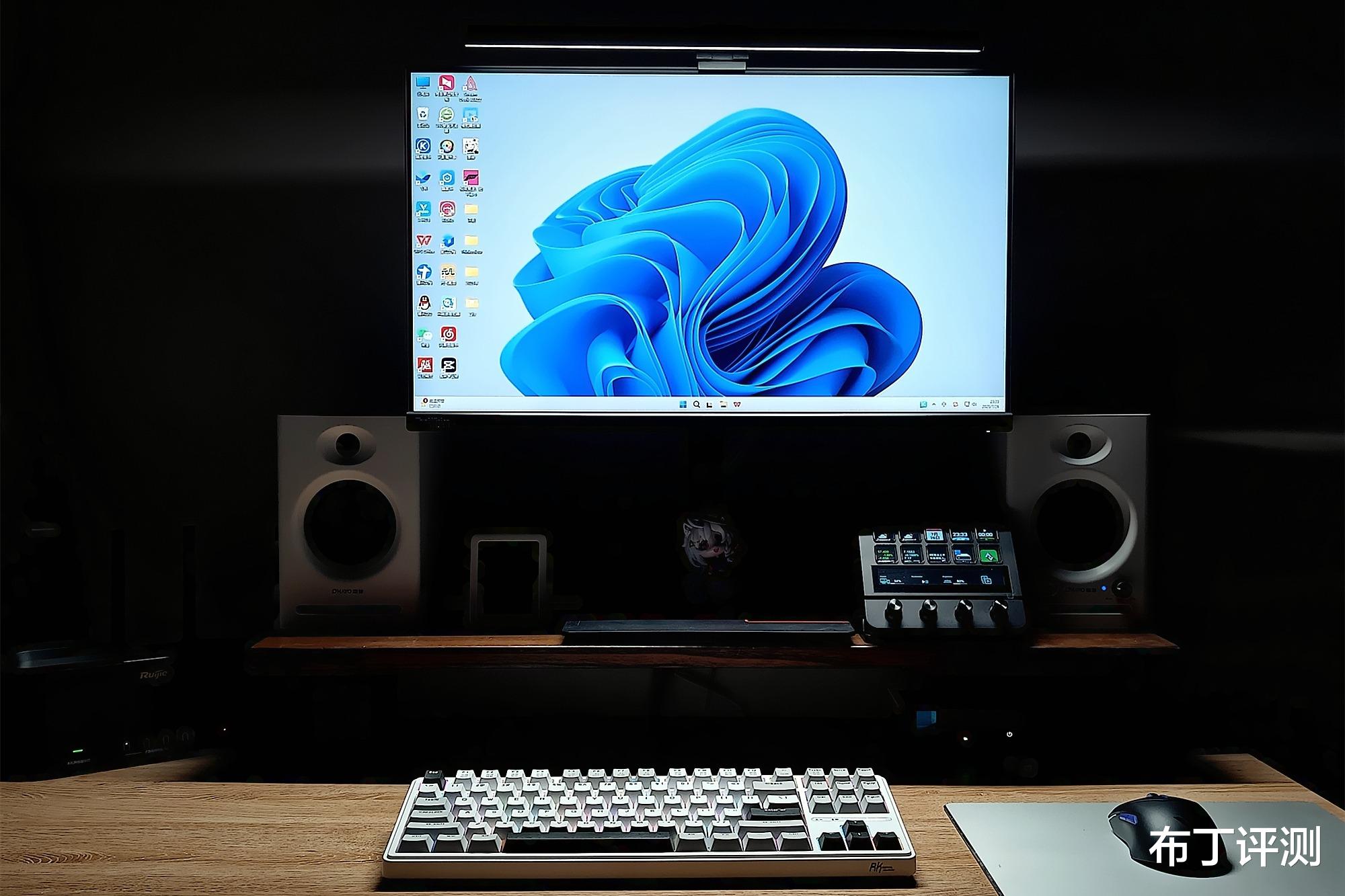 通过书客SKR1的安装实拍图可以看到,我是搭配24寸显示器使用,相比传统台灯它的优势是不占据桌面空间,对于一些像我一样的小桌面用户尤为实用。