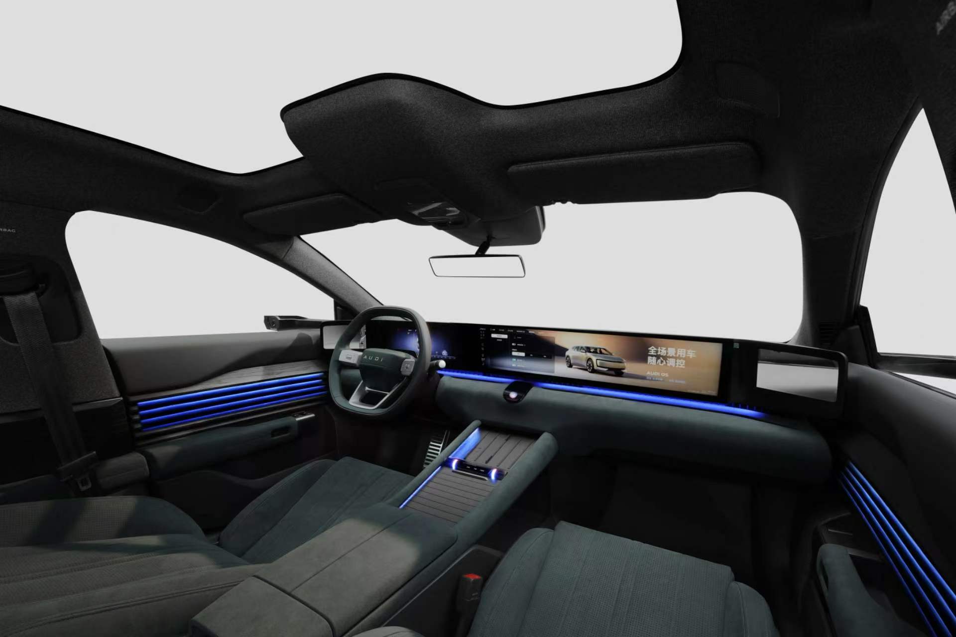 前脸那个发光的镭雕灯带和犀利的灯组,晚上一眼就能认出是奥迪,特别有科技范儿。侧面的线条是我Z爱,从车顶到车尾的弧线特别流畅,配上大轮毂,一看就跑得快。无框车门的设计瞬间拉满运动氛围,隐藏式门把手与超清电子后视镜不仅提升了颜值,更将风阻系数压低至0.201Cd,为续航表现奠定了基础 。