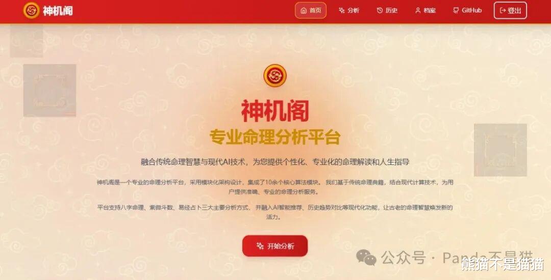 今天要介绍的就是这么神奇的项目—神机阁,项目名字听上去就非常玄学了。该项目能通过AI进行八字命理、紫微斗数、易经占卜等专业分析服务,且支持多模型,同时得到的结果也会通过常语,方便普通人更好的理解,同时项目整个界面也非常好看,非常正能量,项目开源地址为:https://github.com/patdelphi/suanming,作者也提供了demo供大家尝试。