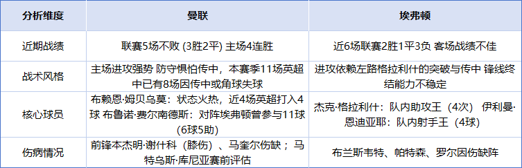 · 锋线效率:曼联的姆贝乌莫脚风颇顺,而埃弗顿锋线球员进球效率普遍不高,这在强强对话中可能会成为决定比赛走向的因素。