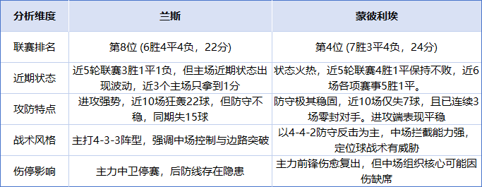 · 历史与心理:从历史交锋来看,兰斯在心理上占据微弱优势。但蒙彼利埃在客场面对兰斯时从未净负超过1球,展现了十足的韧性。