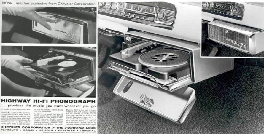 当然,这并不能改变它本质上是个唱机的事实,一旦汽车行驶在不平整的路面上,唱片就会跳针。这件小玩意儿的另一个缺点是它与哥伦比亚唱片公司签有独家内容合同,据说这意味着哥伦比亚唱片公司有权告诉车主,他们只能在车里听哥伦比亚唱片公司签约艺人的作品。这款车载留声机只在克莱斯勒的一个车型上出现过一年,几年后又出现在另一款克莱斯勒车型上,最终彻底从汽车行业消失了。