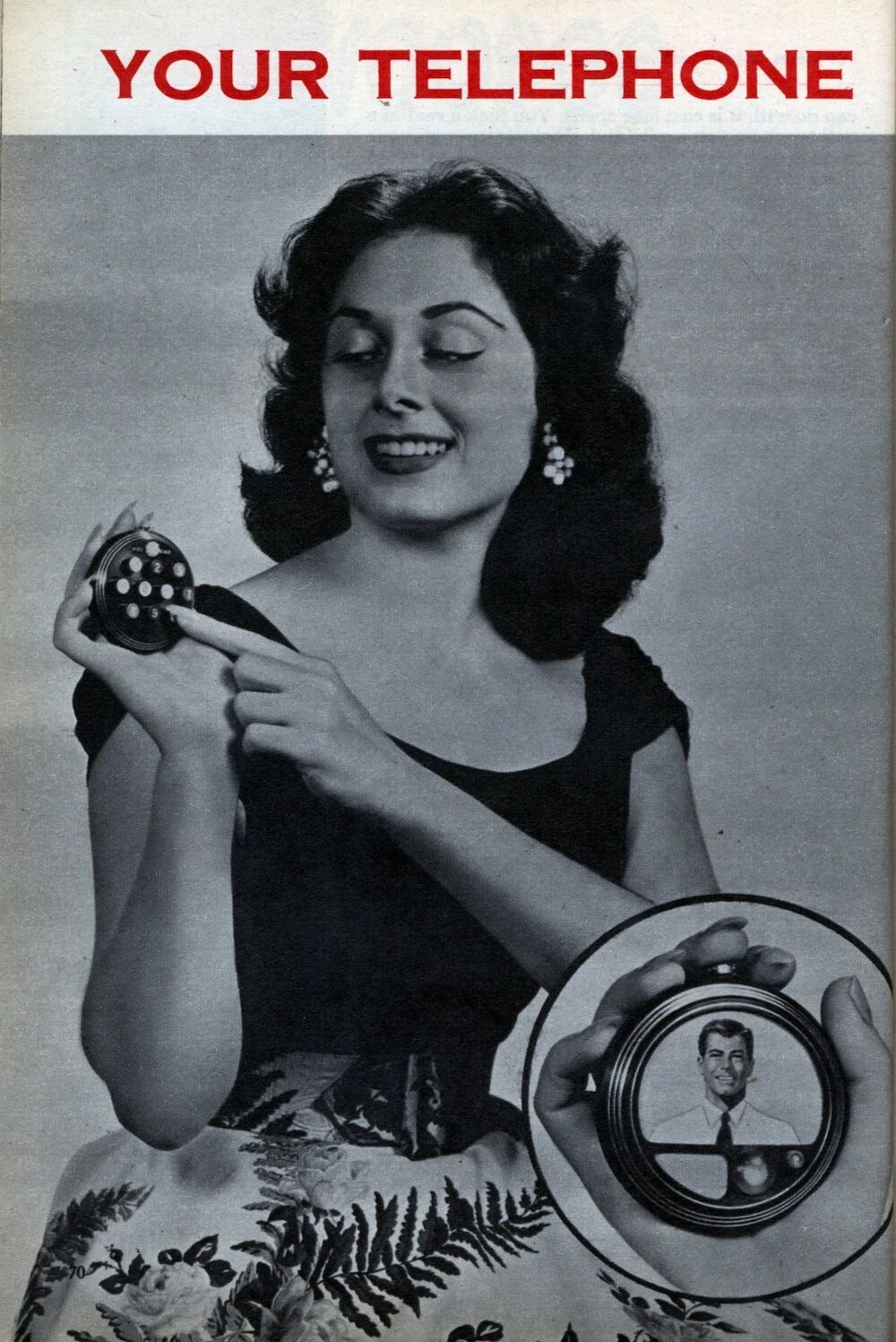 这张照片出自1956年发表的一篇杂志文章,文章探讨了手机的未来,谈到了音频/视频数据压缩和语音识别,以及一种可以观看电视的按键式彩色可视电话。