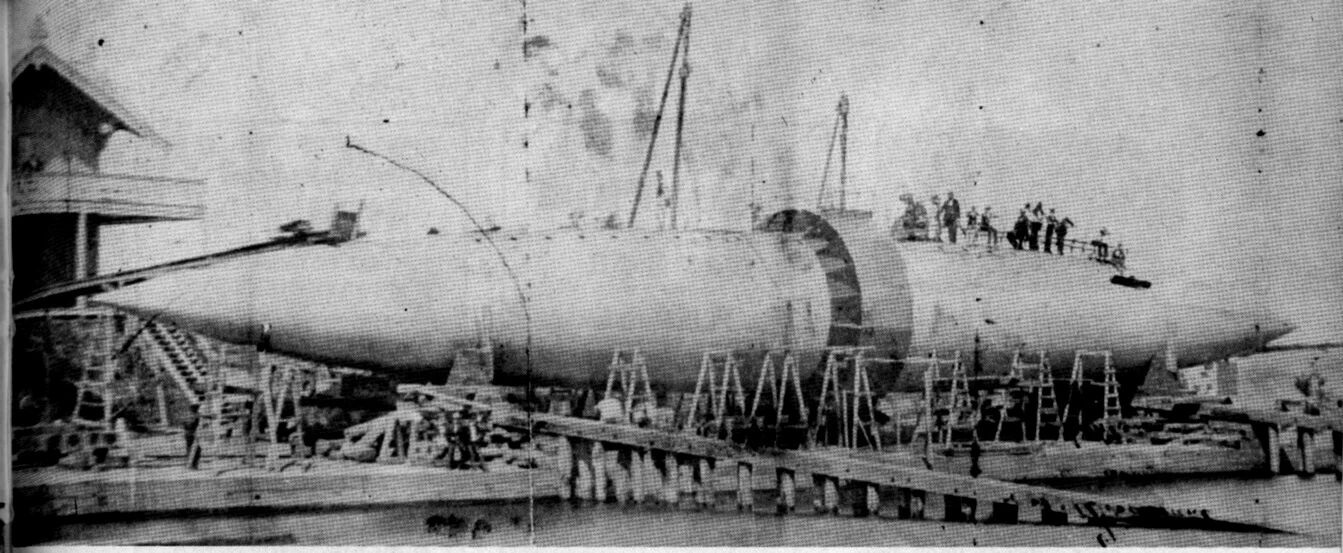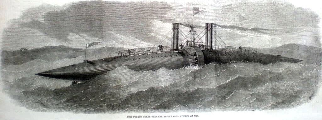 1858年,美国发明家罗斯·威南斯在巴尔的摩渡轮湾建造了一艘名为“滚轴船”的船只。当时的报纸称其“将开启船舶建筑的新纪元”。这种船型前所未有。它没有龙骨、桅杆、索具,甚至连甲板都没有,船身呈流线型雪茄状。其环形螺旋桨位于船体中央,环绕着船腰旋转……