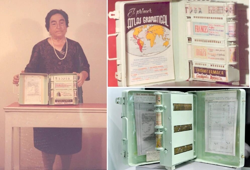 1949年,安吉拉·鲁伊斯·罗布莱斯创造了她的原型机,这只能被称作是当今电子阅读器的最早的原始版本。它具有缩放功能,读者可以聚焦于文本的特定区域,该设备利用压缩空气工作,因此可以添加不同的电缆来“下载”预加载的内容。这一切听起来非常先进,但实际上,作为一名教师,鲁伊斯只是想为学生们发明一种能减轻书包重量的东西。她相信这个装置能让每个人都更容易阅读,并将它命名为“机械百科全书”。