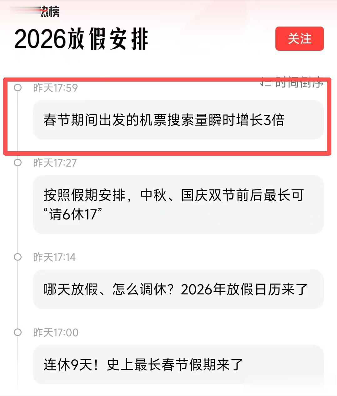 以往的情况都是越早订机票和酒店,就意味着价格和优惠上会更有力度,而现在这个假期安排,必然会导致春节期间的出行量大大增加,那么也就意味着打折的力度很可能会有所下降,这对很多人来说肯定不是个好消息!不过你们认为这些航空公司会不会在春节期间临时增加班次呢?
