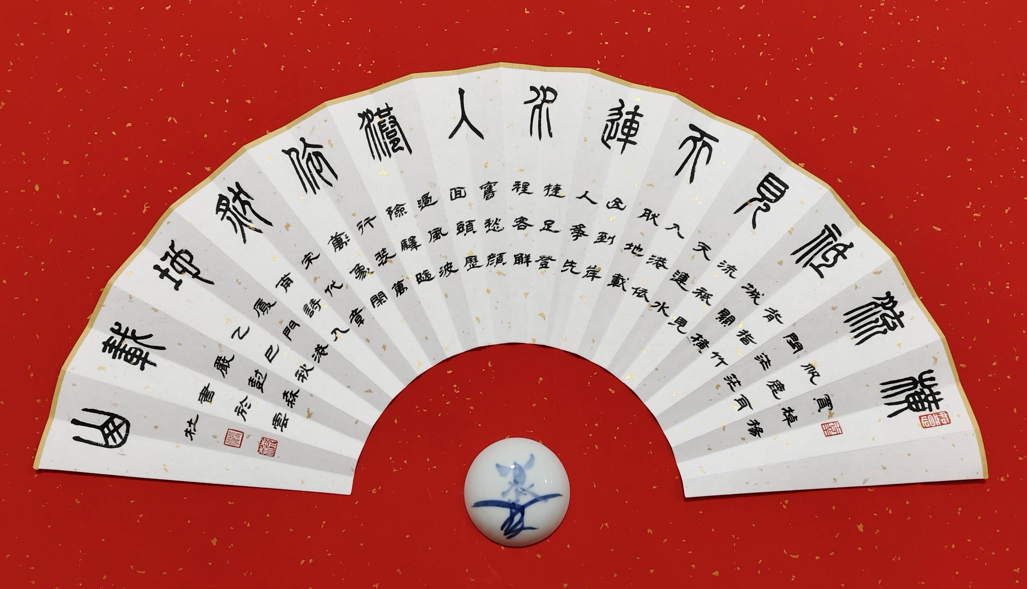 厦门 书法家严树森篆书扇面书法作品 书写历代诗人咏厦门古诗九首