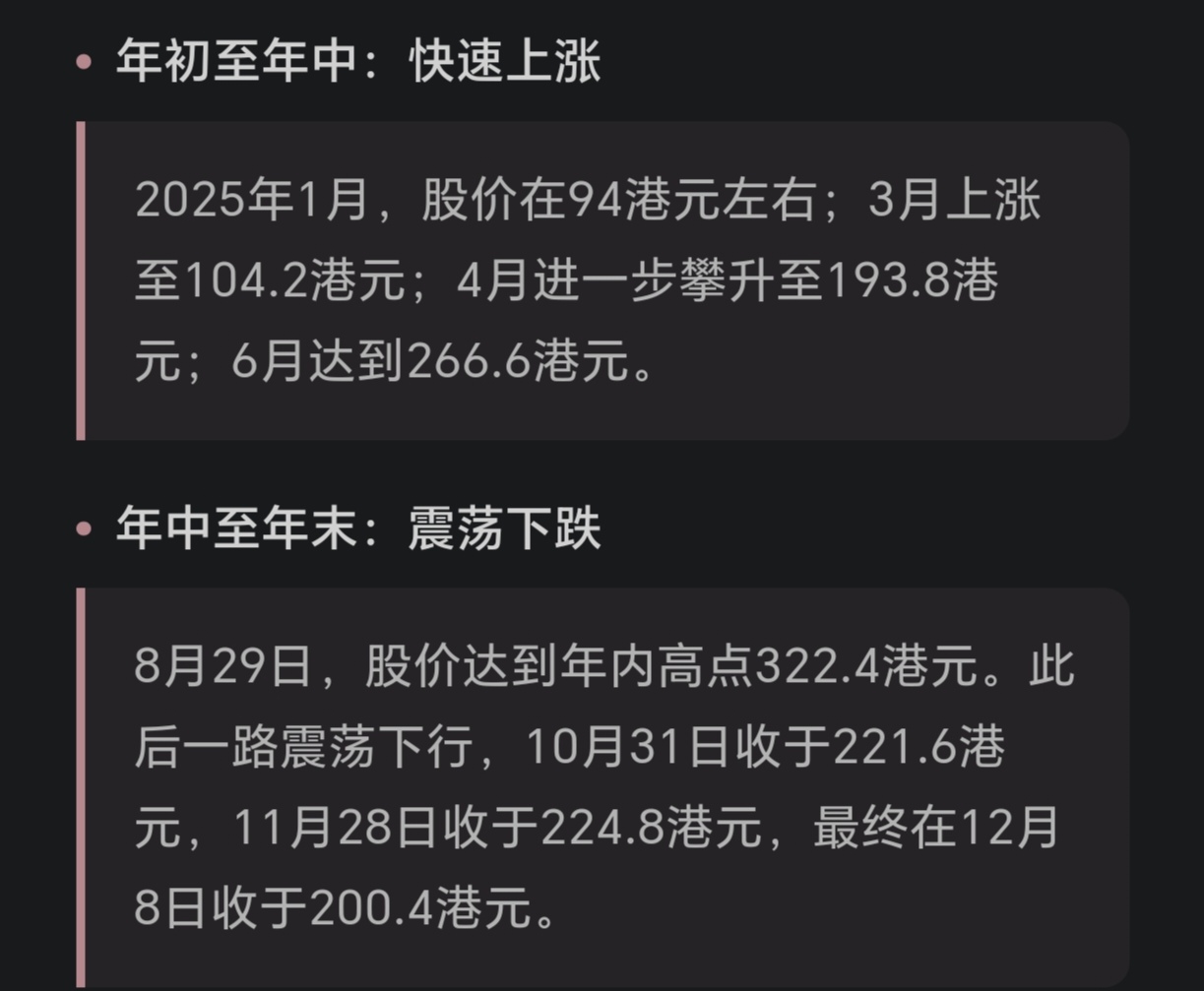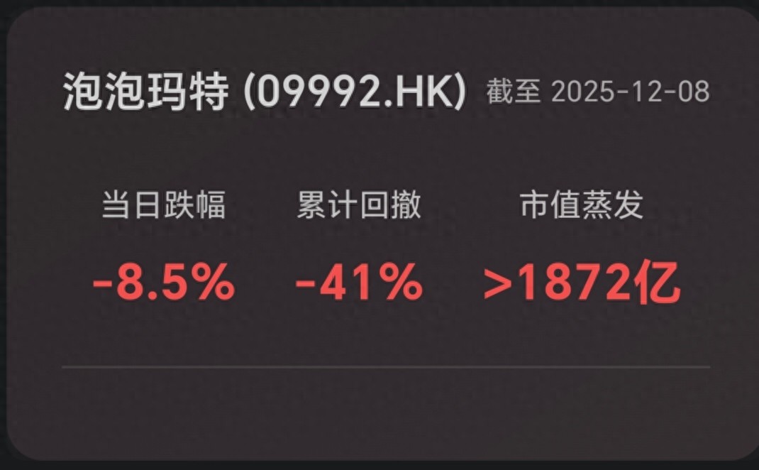 自2025年8月创下历史新高后,其股价持续承压,截至12月8日,累计跌幅已超41%,市值蒸发超过1872亿港元。