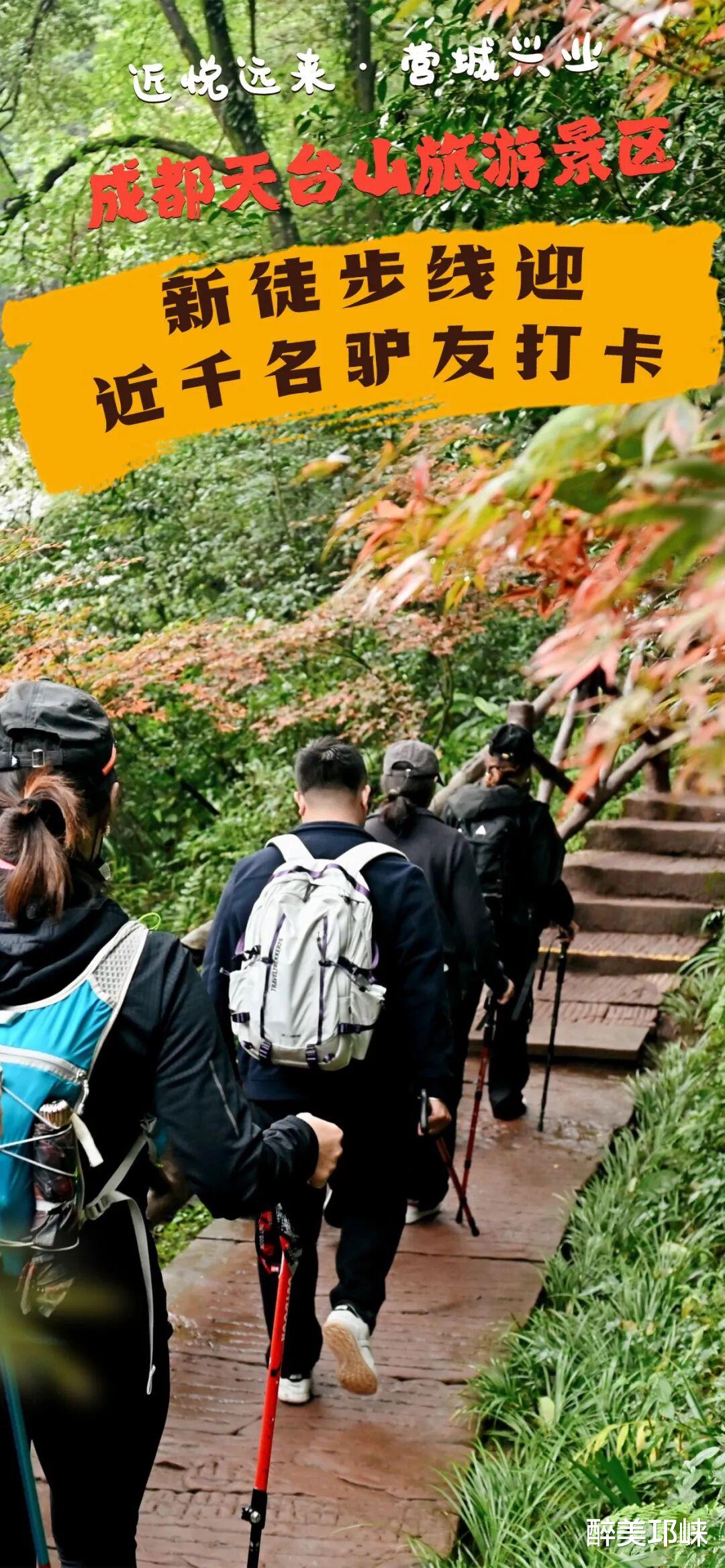 来自德阳的徒步爱好者董女士说,“第一次来天台山,这里环境不错、空气清新,四季皆有景,很适合来徒步打卡。”