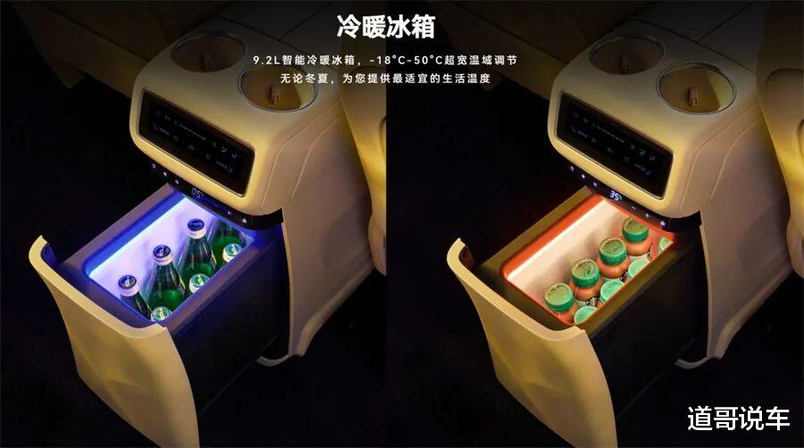 舒适配置:主驾升级卷帘式伸缩腿托,增加双侧小桌板,9.2L电动智能冰箱成为标配;