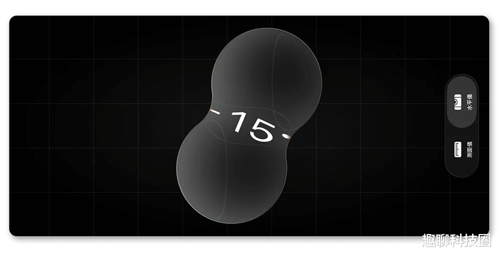 我们熟悉的测距仪水平测量功能,这次也更新成了iOS 26 全新的 Liquid Glass 设计风格,当我们使用它的时候,里面的数字会因为球体的滑过,出现光线折射那种变形感,看起来真的非常酷。