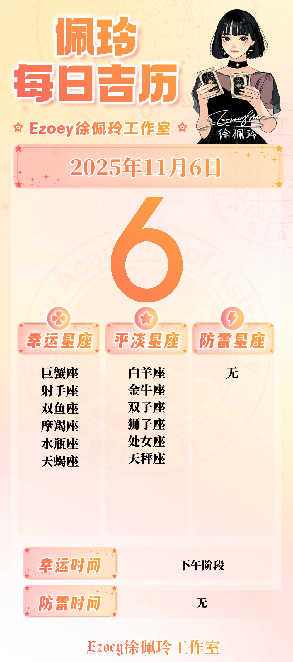 【11.6日播报】进修提升日 幸运星座:巨蟹座、射手座、双鱼座、摩羯座、水瓶座、天蝎座——Ezoey徐佩玲25年星座播报