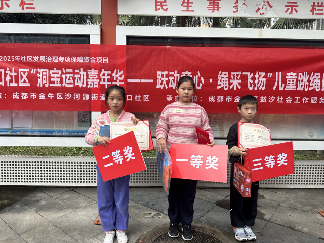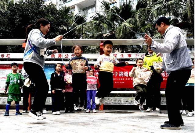 此次跳绳比赛既让儿童在运动中掌握了跳绳技能、树立了“健康运动”理念,也通过亲子互动、团队协作增强了儿童的社区归属感,为打造全龄友好型社区注入更多活力。
