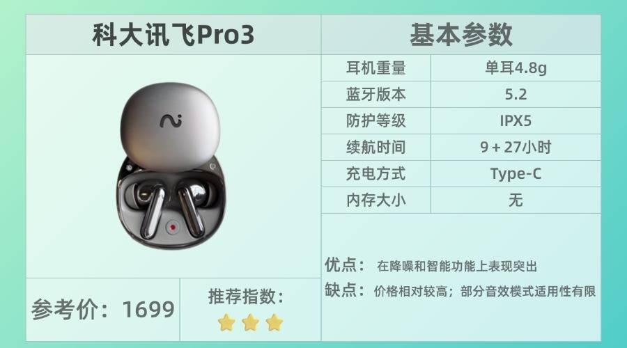 科大讯飞Pro3精准定位会议与办公场景,在降噪和智能功能上表现突出,搭载先进的降噪技术,能有效过滤环境杂音,即便在嘈杂的办公室或咖啡馆,也能打造相对安静的聆听环境,非常适合远程会议使用。