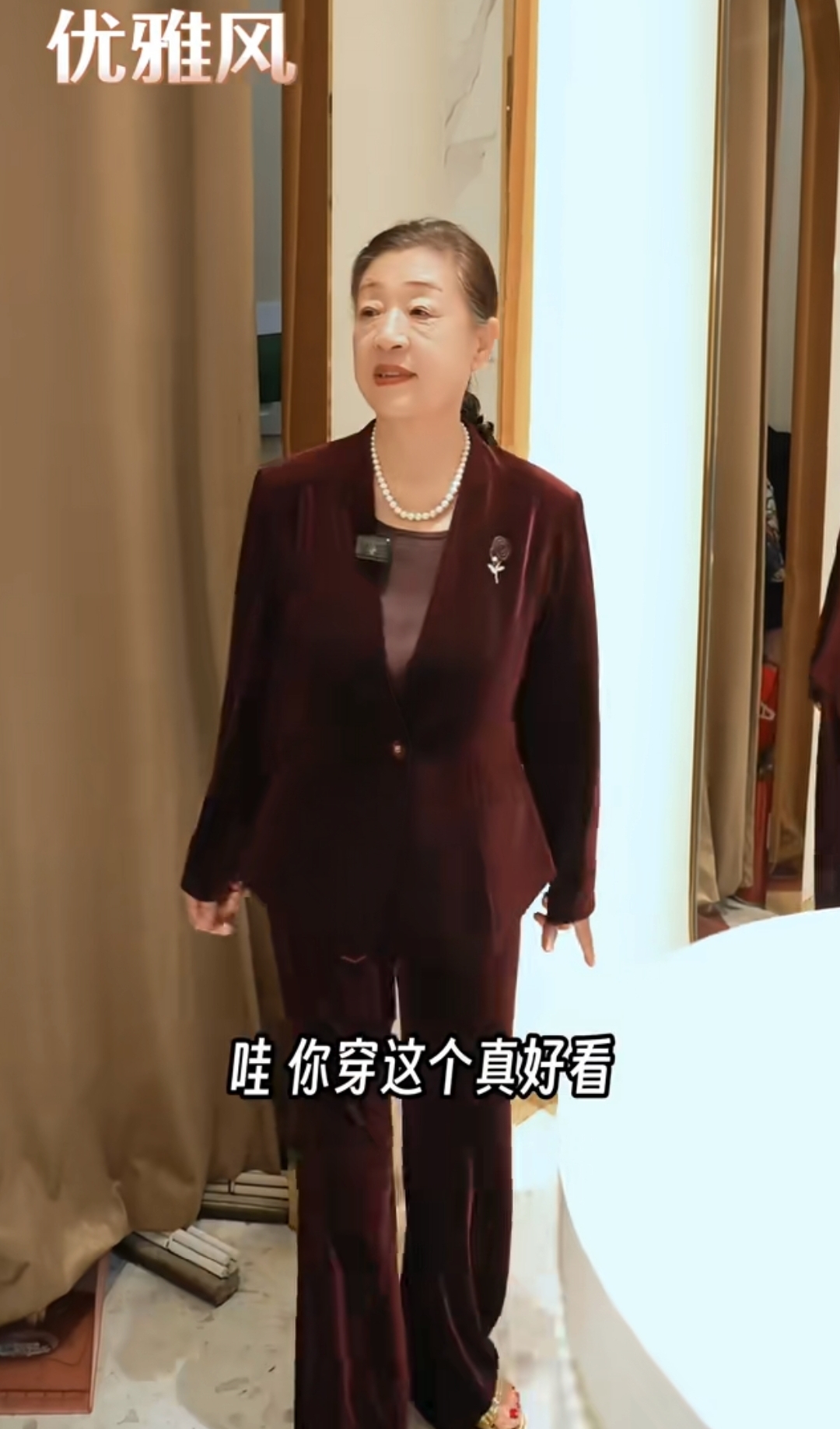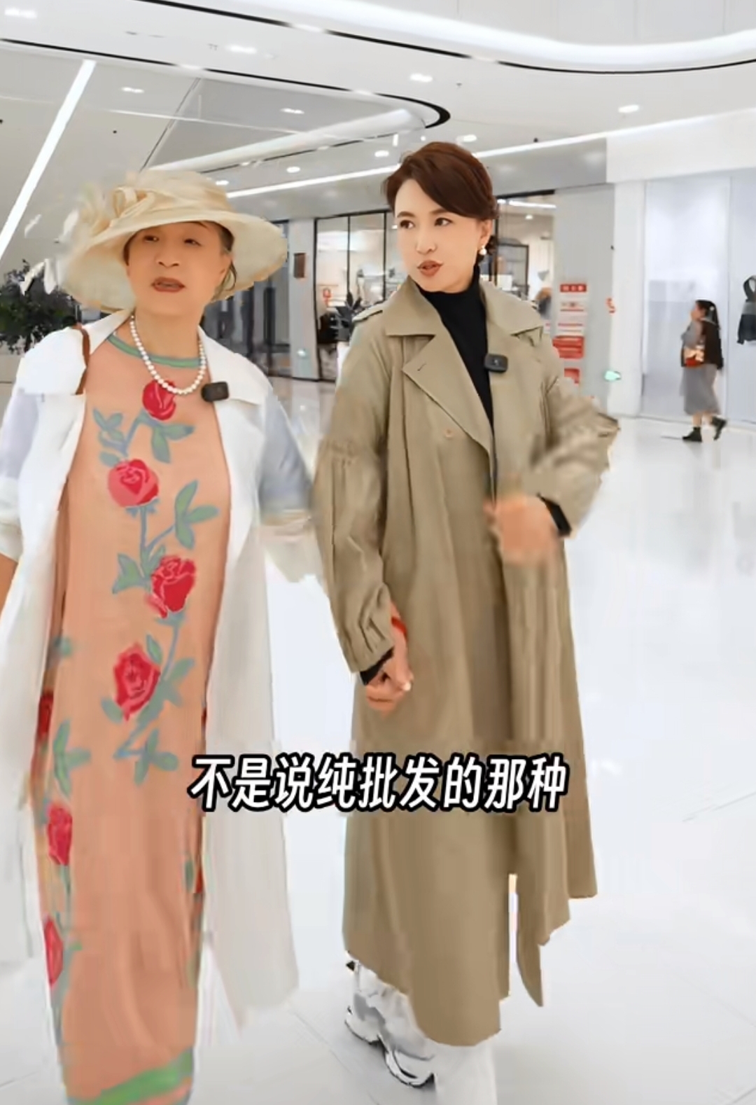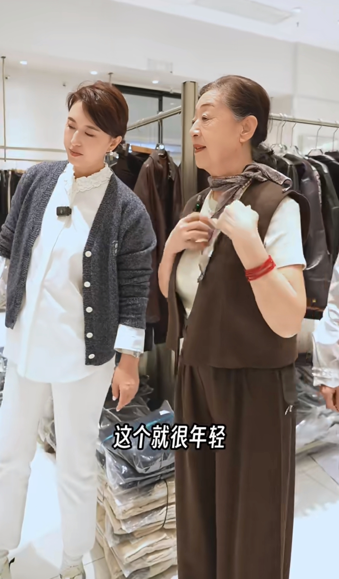 张蕾带妈妈去的虽是服装批发城,但大多带妈妈逛的都是原创服装店,给妈妈也都是挑的好的,年轻一点的。张妈妈也很看好女儿的眼光,张蕾挑一套,她换一套,每一套都很好看,而且很显气质,而且感觉张妈妈身上也有那种主持人的气质,站得笔直,体态是真好。