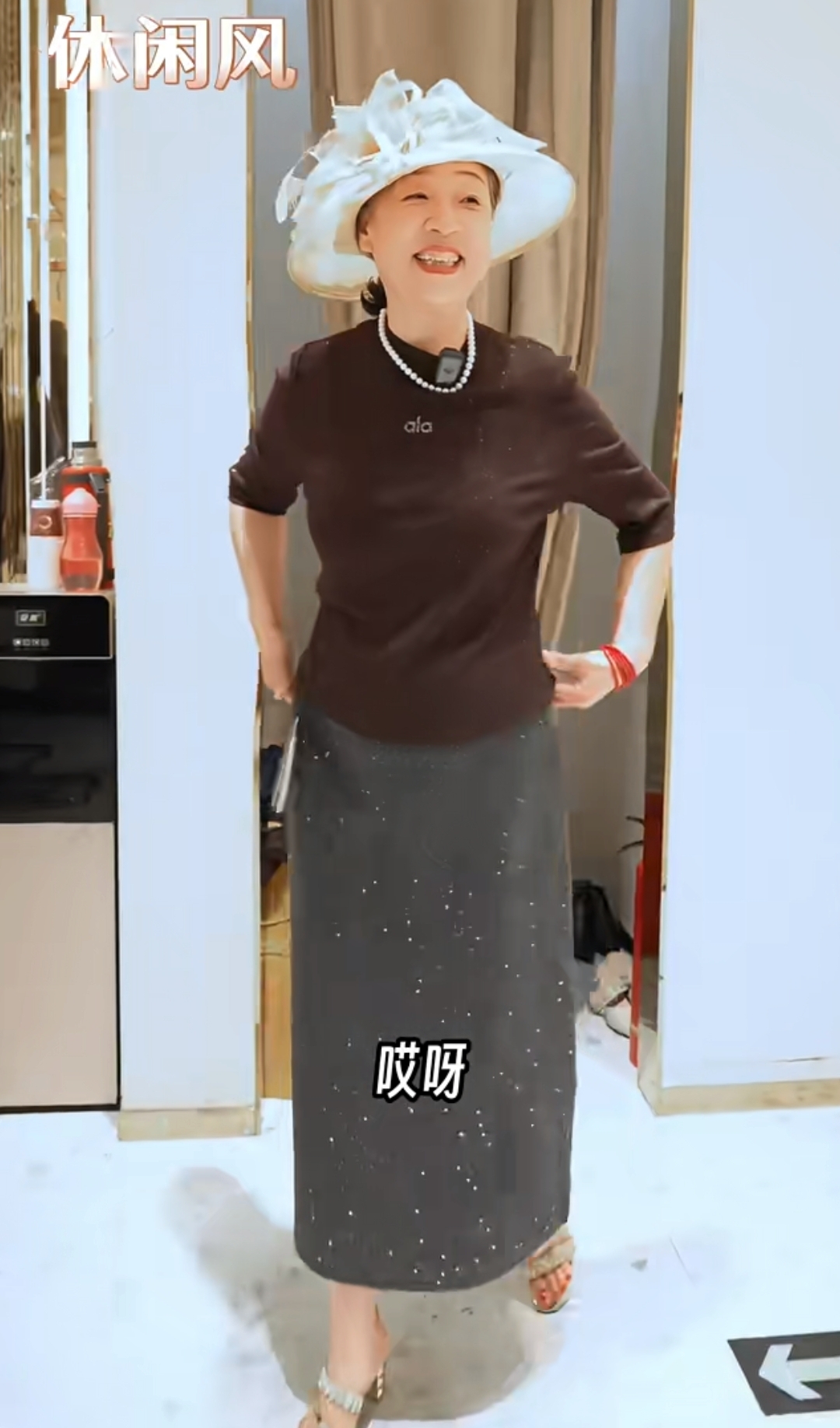 今年46岁的张蕾保养得很年轻,没想到她的妈妈保养得更年轻,张妈妈年纪至少70+了,但看着真不像老年人,打扮非常洋气,穿着鲜艳的裙子,头上戴着礼帽,气质端庄又贵气,不知道估计以为才50+的岁数。