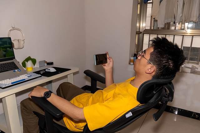 最让我惊喜的是它的护腰系统。以前坐普通椅子,时间一长腰部就酸痛难忍。而这款椅子采用了 ZeroG2.0 灵动腰靠系统和自动三区浮翼追腰设计,就像有一双无形的手在时刻托住我的腰部。当我打游戏时,它能提供稳定而均匀的支撑;后仰放松时,又能随着身体的移动动态调整支撑角度和力度,真正做到了 “撑腰不悬空”。这几周用下来,腰部的疲劳感明显减轻,感觉腰椎损伤的风险都降低了不少,一张好的椅子确实能够延长坐着的时间,但坐久了该起来活动还是要起来活动一下。