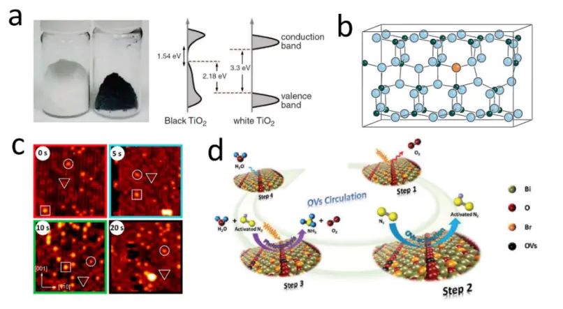 图1:氧空位的构筑手段(a)高温氢化;(b)掺杂;(c, d)高能粒子轰击