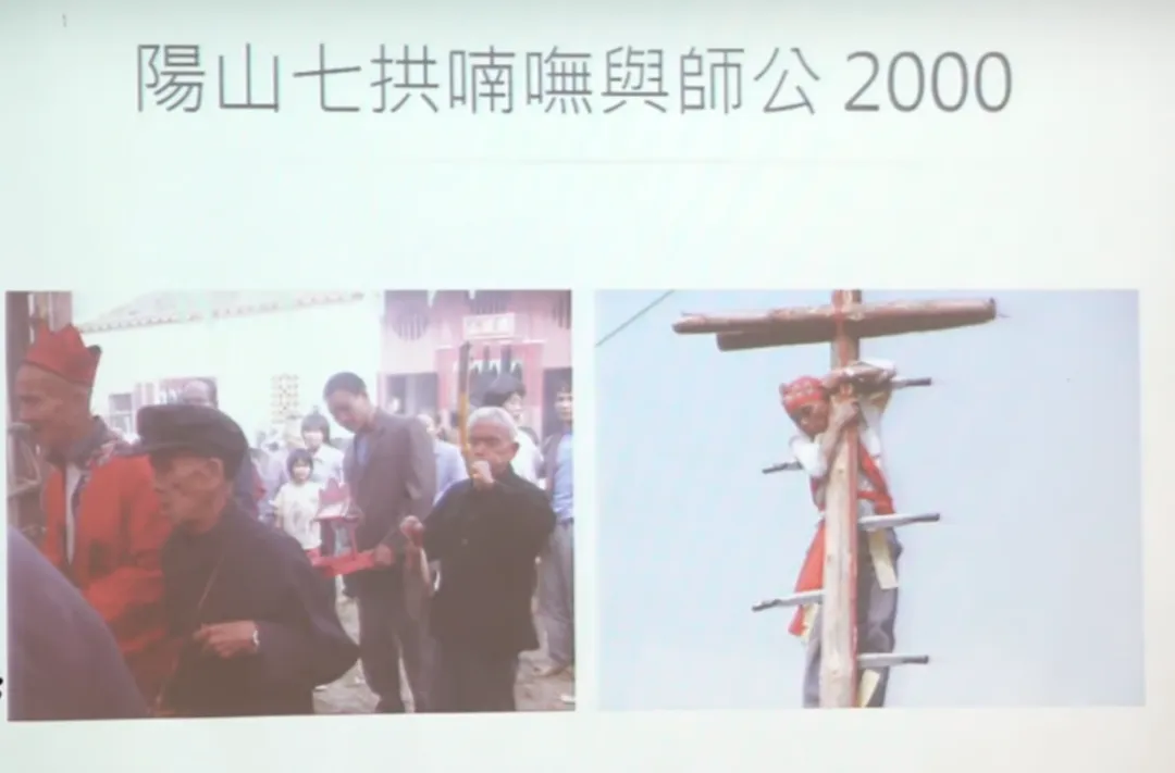 “喃呒”仪式从16世纪就已经在广东出现了,最初这个词怎么来的,现在是无从考证的。有说是从佛教僧人念“南无”这个音这么演变来的,这个说法也是比较站得住脚,香港中文大学谭伟伦教授做了大量的田野调查,发现粤北及粤西北的“喃呒”先生却自认为是佛教僧人。真正的粤北地区喃呒仪式也分文坛和武坛,武坛要做好几天,也不只是跳火盆,还需要爬刀山。(偷一张谭教授的课件)