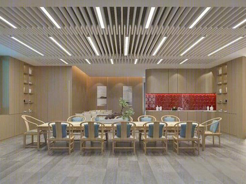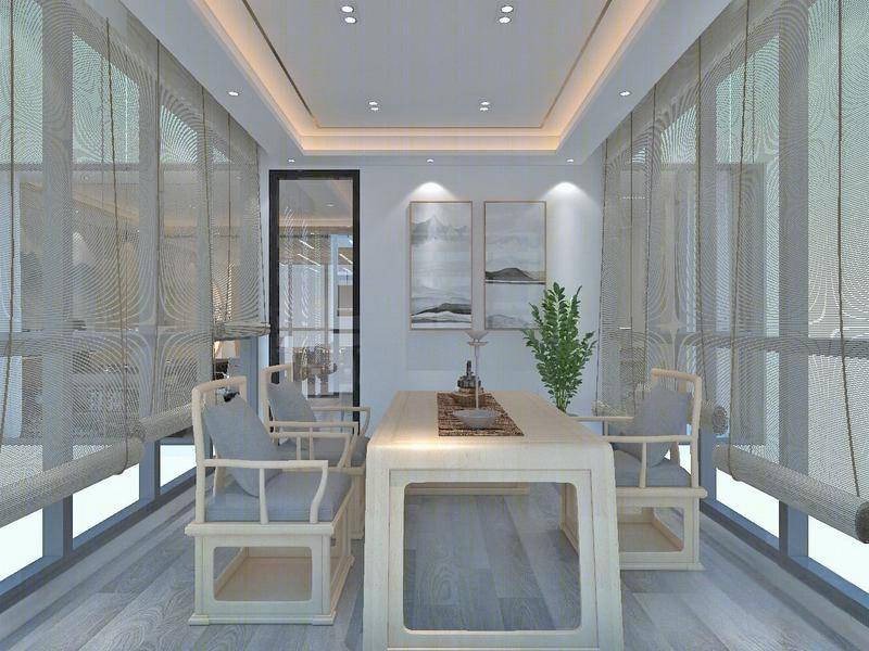 本案以山水、茶道、器物为符号,将传统意境转化为可感知的空间语言;通过极简布局、智能照明与复合家具,平衡效率与审美;利用自然材质与光影层次,营造“隐逸而不疏离”的沉浸式体验。整体契合当代“新中式办公与生活美学”的趋势,既回应快节奏社会对效率的需求,又通过文化符号与自然元素缓解现代人的精神焦虑。