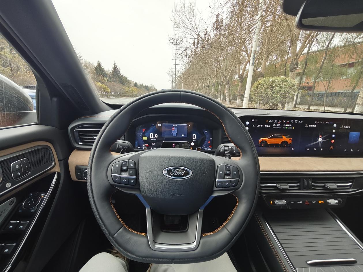 怎么说呢,探险者的操控感我觉得是这个价位里最好的了,甚至跟更贵的宝马X5比起来也不相上下。方向盘低速时力度轻盈,停车入位不费劲。高速时力度会适当加重,给人稳健的感觉。转向精准度不错,虽然车身庞大,但开起来并不觉得笨拙。
