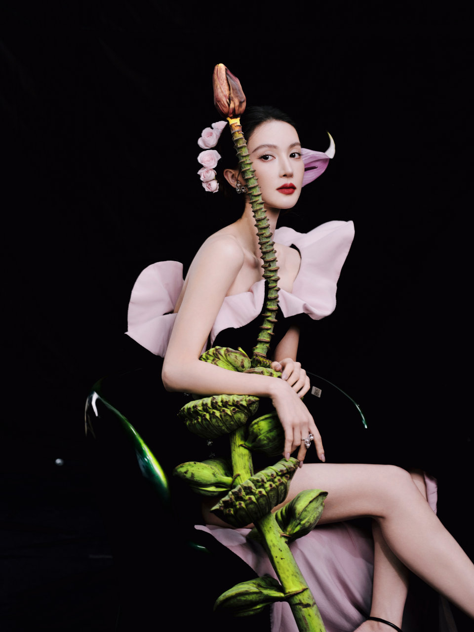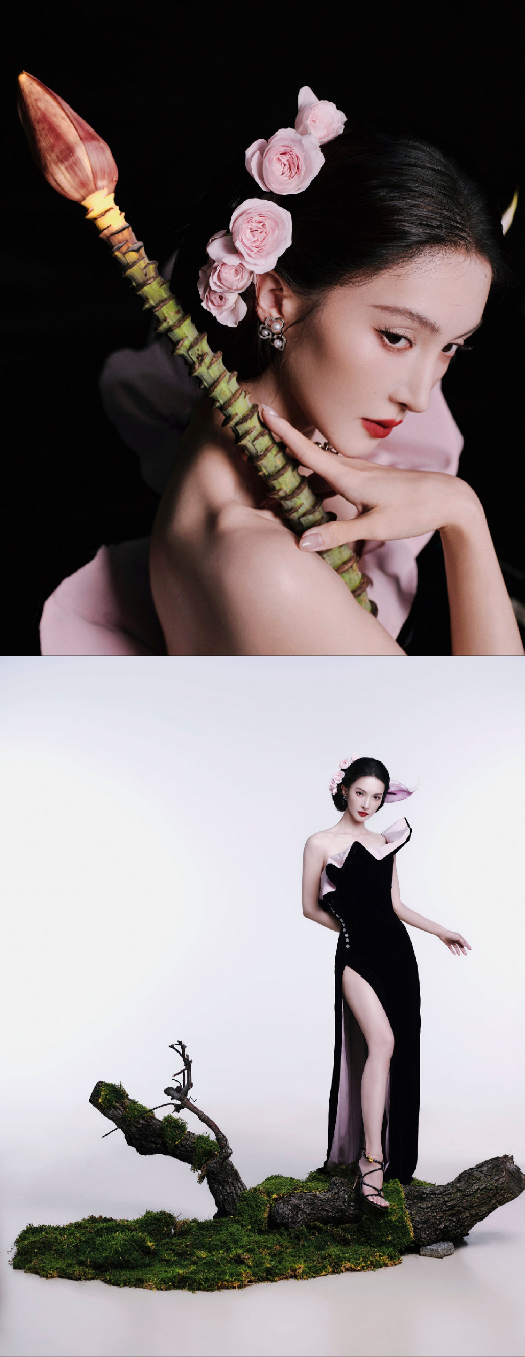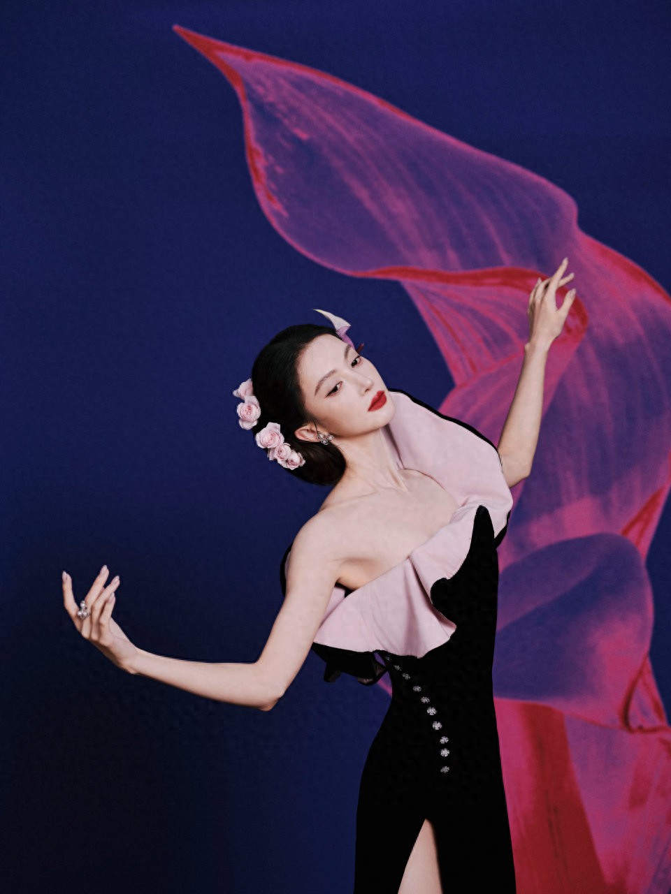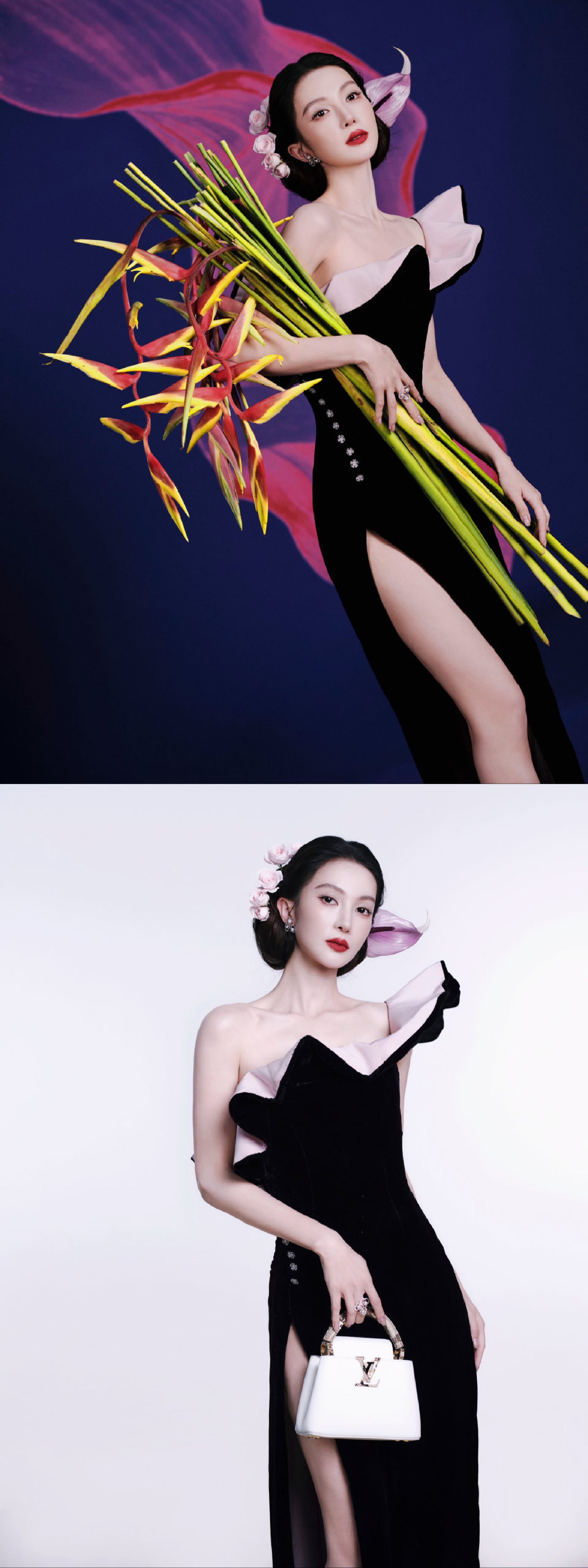 金晨黑色开叉裙写真,藏不住的美腿真撩人