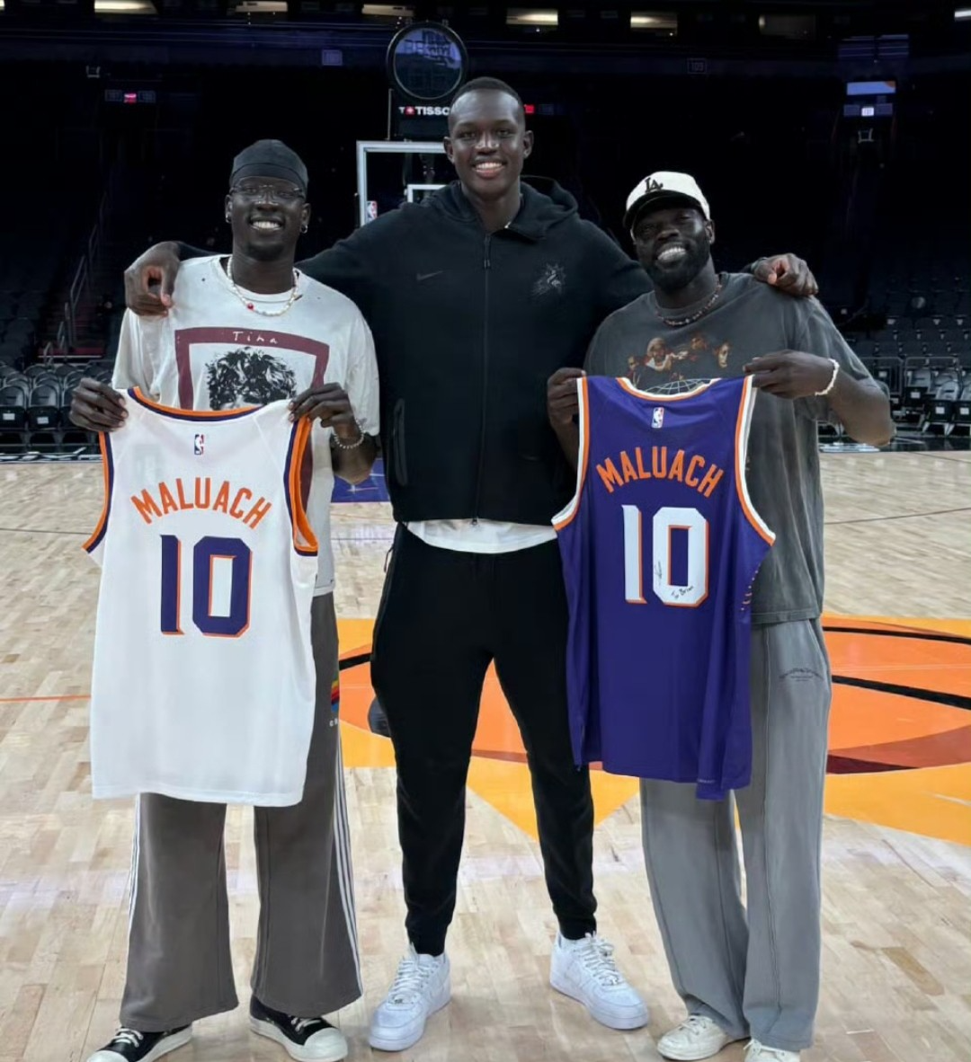 近日,北京首钢男篮前外援奥莫特和辽宁男篮前外援沙约克,在NBA赛场助阵自己的小兄弟马鲁阿奇。这名新秀中国球迷应该非常熟悉,他在选秀训练营里跟杨瀚森关系非常好,马鲁阿奇还用中文祝杨瀚森一路顺风。小杨被开拓者选中之后,马鲁阿奇也是第一个跟他拥抱致意的新秀球员。小伙子天赋挺高,只不过现阶段的上场时间并不多,加油吧,南苏丹的这些球员,身体天赋都非常出色。