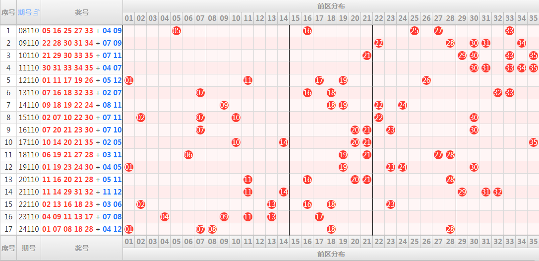 六、历史同期,前区开奖结果和走势图(历史数据演示):
