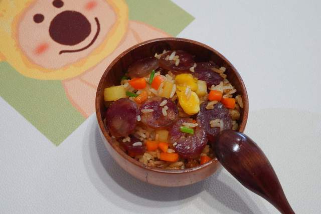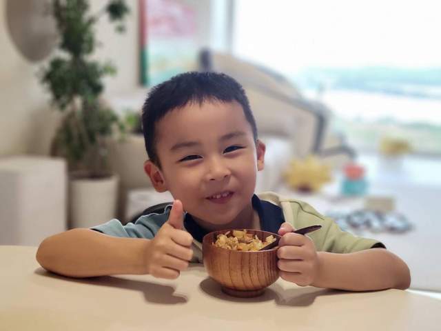 搅拌几下,喷香喷香的,口感虽然不及外面餐厅的,但也很好吃。不仅我们大人爱吃,平时比较挑食的娃一口气可以炫一大碗,分分钟光盘!