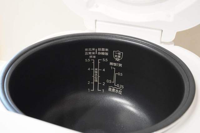 电饭煲内胆有清晰的水位线标识,无论是煮饭还是煲粥,都不用纠结该加多少水,只需将食材和水加到对应的刻度线,就能轻松掌握最佳比例。