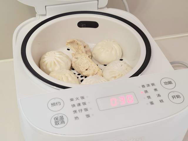 每次我妈妈来我家看我,都会为我包上两抽屉包子和饺子,然后冻起来慢慢吃。美的白月光电饭煲附赠了一个蒸笼,可以蒸饭菜、包子、饺子、玉米、红薯、粽子等。
