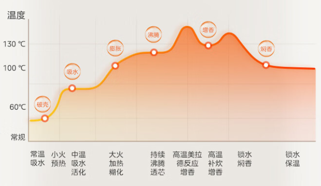 再来说说火候控制,以前婉儿体验过的其他电饭煲煮饭,就很简单粗暴,水沸腾后就转小火保温,主打一个“躺平”,导致米饭容易上生下熟。而美的的这款电饭煲就像一个经验丰富的厨子,整个过程都有把关,每一步都匹配最佳的温度,先让大米吸饱水分,再充分受热、释放甜味因子,然后蒸发掉多余水分,最后闷出米饭香气。