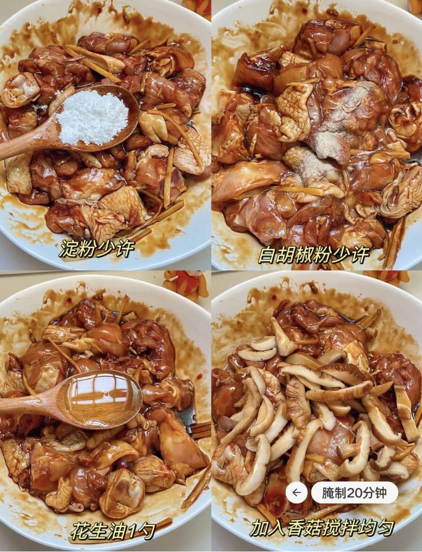 浓郁的酱汁包裹着鸡肉,又带有香菇的鲜味!
