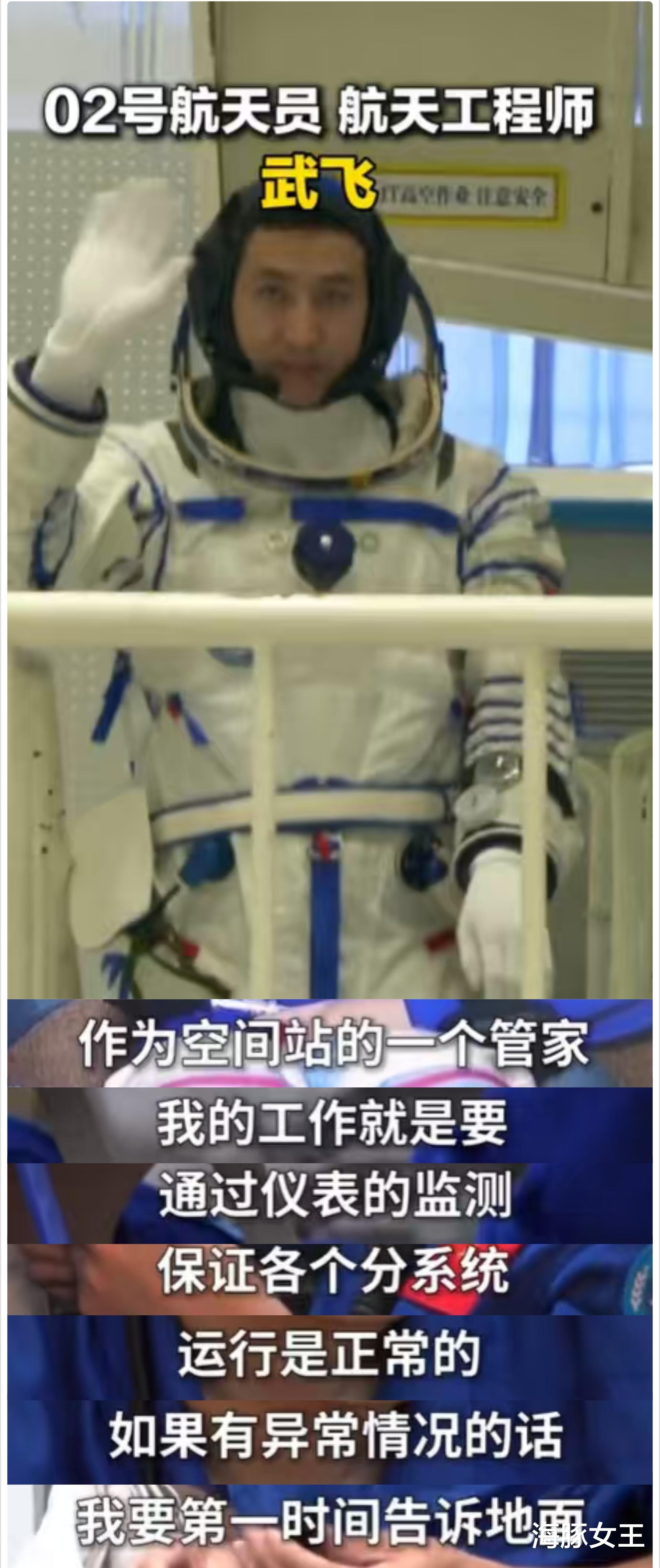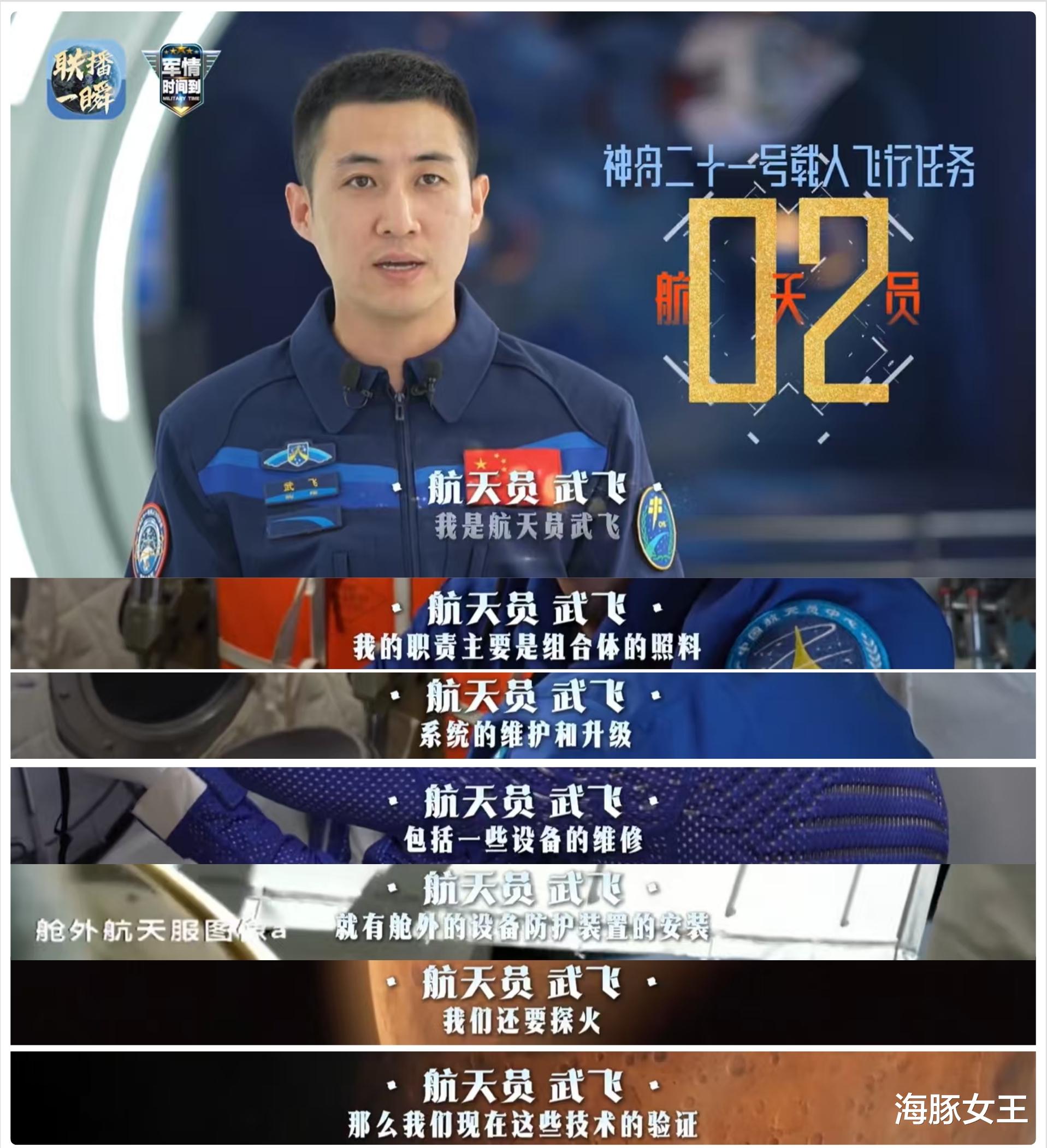 武飞在神舟二十一号中,担任航天飞行工程师,主要的工作是系统的维护和升级,包括一些设备的维修。