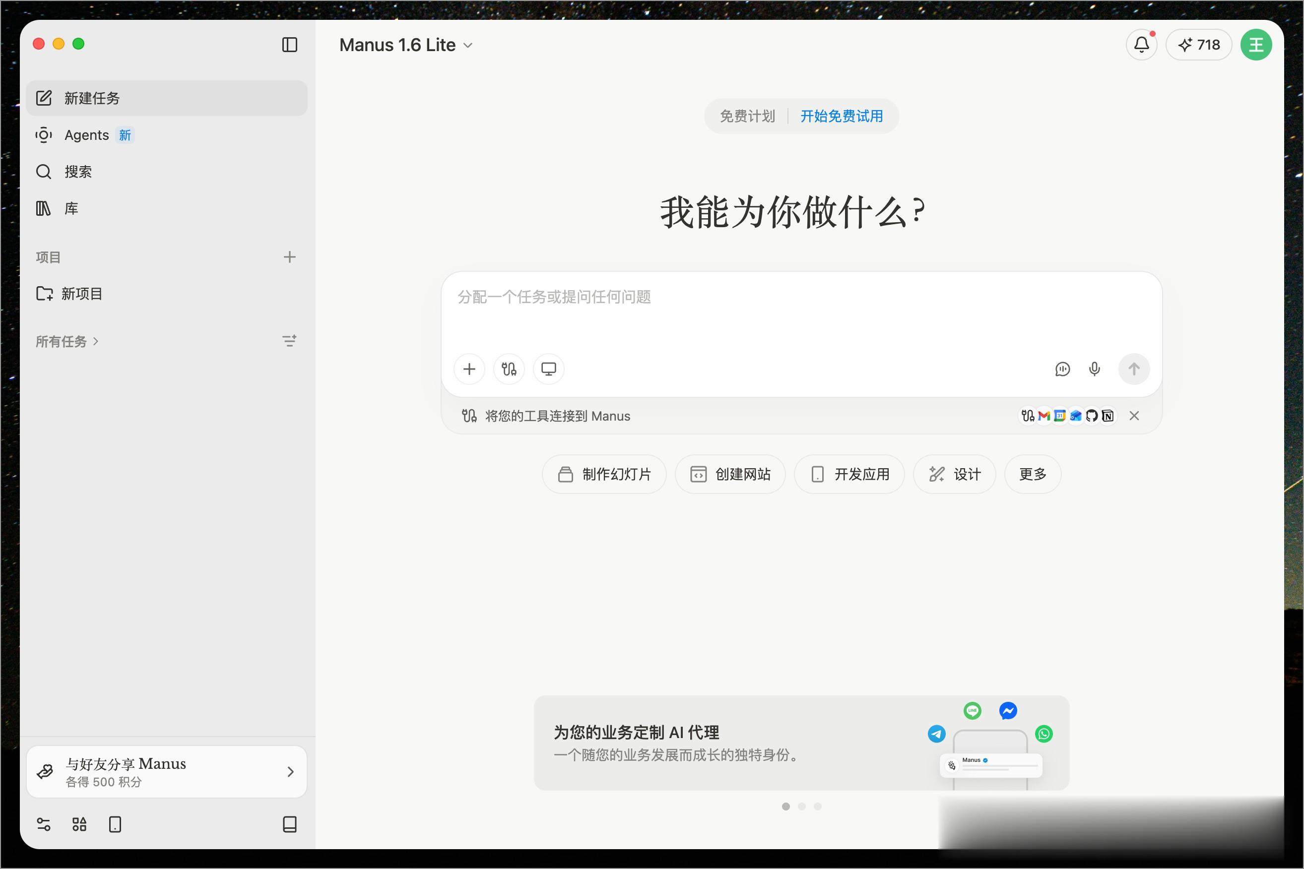 相关链接你可以使用我的邀请链接注册登录,你也可以获得 500 积分,大约能完成 10 次任务:https://manus.im/invitation/YVHAJHU8KUYQRV