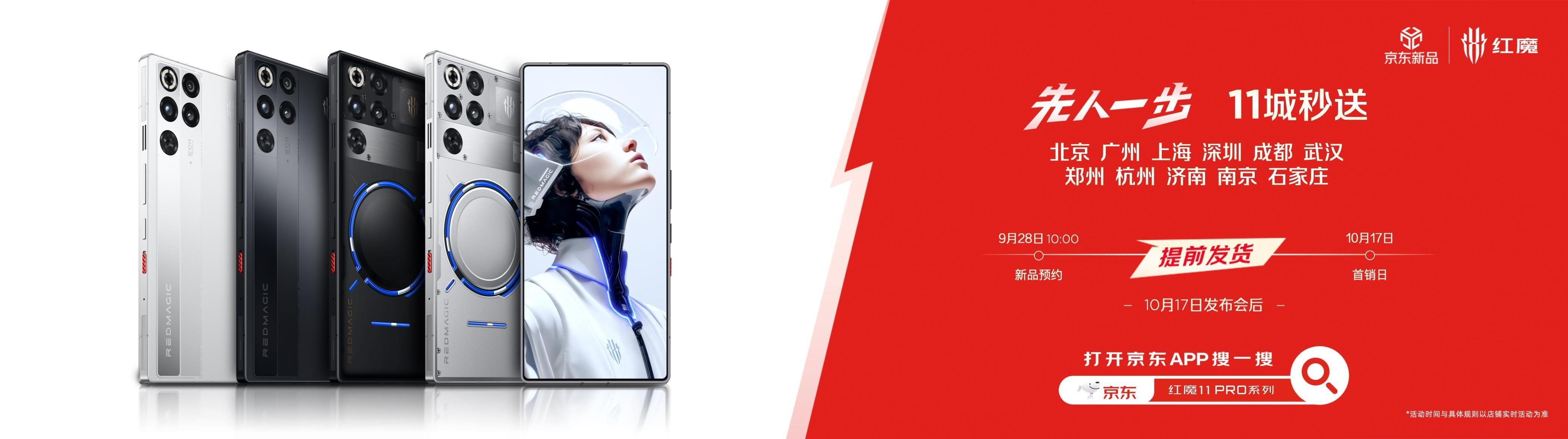 红魔11 Pro系列于2025年10月17日开启全球首发。首销用户下单即享专属福利:Careplus套装、红魔幻刃手柄、140W氘锋氮化镓快充套装、糖果三合一充电宝续航套装四选一。京东白条12期免息,学生专属24期免息福利,以旧换新至高可享1300元补贴。购买红魔11 Pro系列的用户,还能解锁《穿越火线:枪战王者》、《暗区突围》、《剑灵》、《剑灵2》等热门游戏专属限定礼包。