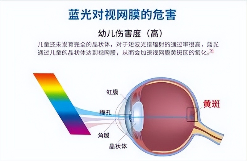 2、蓝光危害:劣质台灯中的415-455nm的有害蓝光波段会直接损伤视网膜,尤其现在孩子的视网膜尚未发育成熟,长期暴露会导致视网膜感光细胞受损,不仅加速近视,还可能引发黄斑病变等不可逆问题。