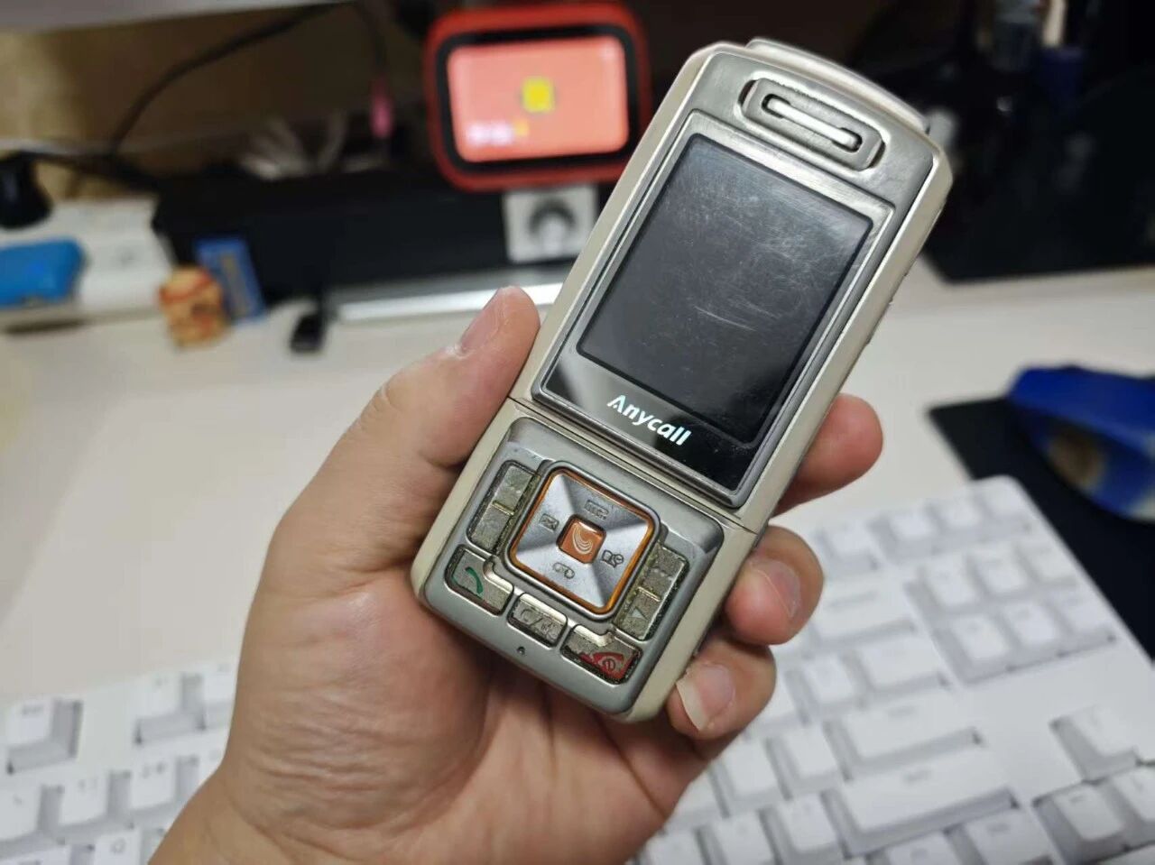 上周末我跟朋友开车去樟树那边的“千岁丘”看风景,中途路过一个县城的废品回收站,我看到有一台成色很烂的古董手机,花5块钱买来碰碰运气,看看能不能开机。