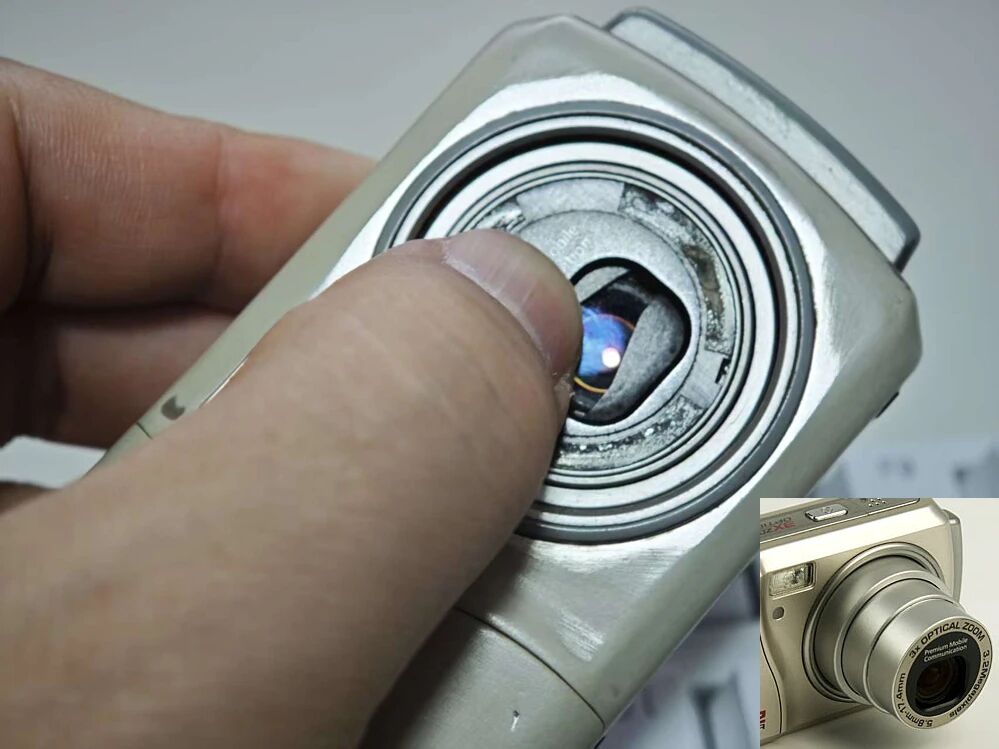 我掰开了镜头保护盖,可以看到CCD传感器,还真是伸缩式镜头,跟老款的数码相机一样。这手机还跟宾得合作开发了滑动透镜技术,支持TV-OUT输出,也就是可以将照片投到电视上或显示器上观看,当年绝对算黑科技了。