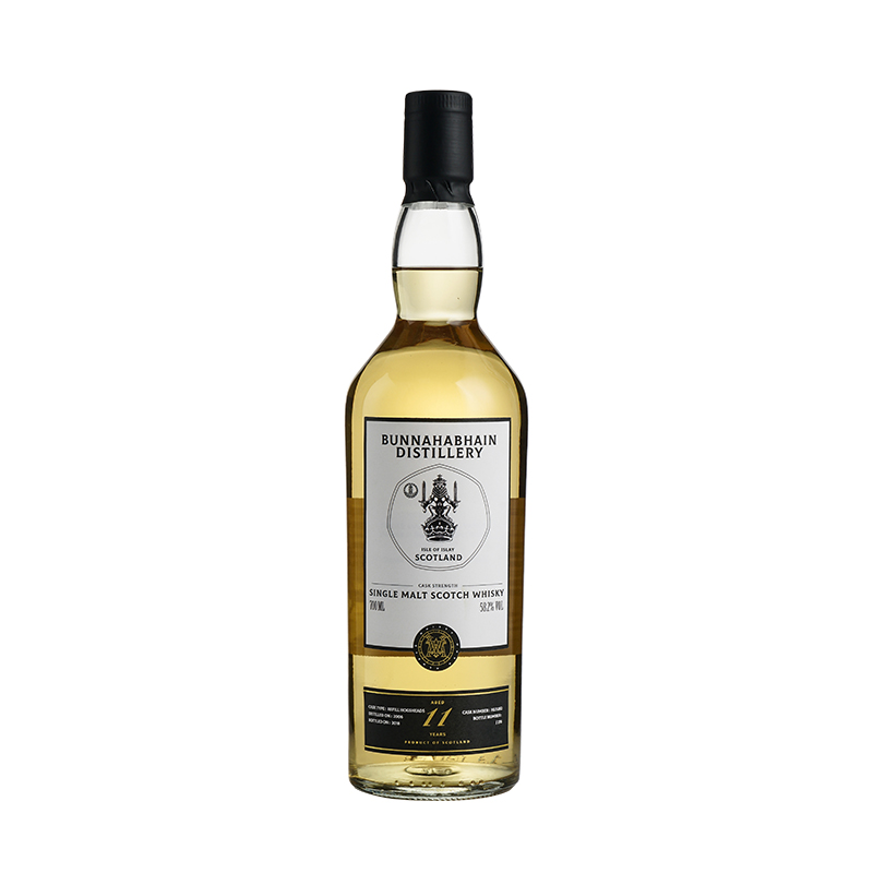 布纳哈本 11 年单桶,使用非冷凝过滤装瓶法,口感颇具深度,更好地保存原酒风味。于 2006 年蒸馏,新酒在精选REFILLHOGSHEADS 桶里面,静静地躺在海边上的仓库里,经年累月受着大西洋的淘洗,于 2018 年以桶强浓度 58.2%ABV 装瓶成为醇厚柔顺,舒适宜人的佳酿,全球仅有 276瓶酒标更是结合英国经典图腾皇室狮子守护神,以尊贵的苏格兰古老文化符号,传承守护布纳哈本风味工艺