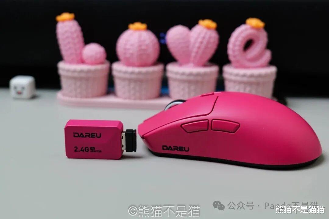 接收器和鼠标弄成了一个色调,鼠标左侧印着达尔优的英文 LOGO。鼠标整体线条挺好看,收口边缘的地方都做了圆角处理。