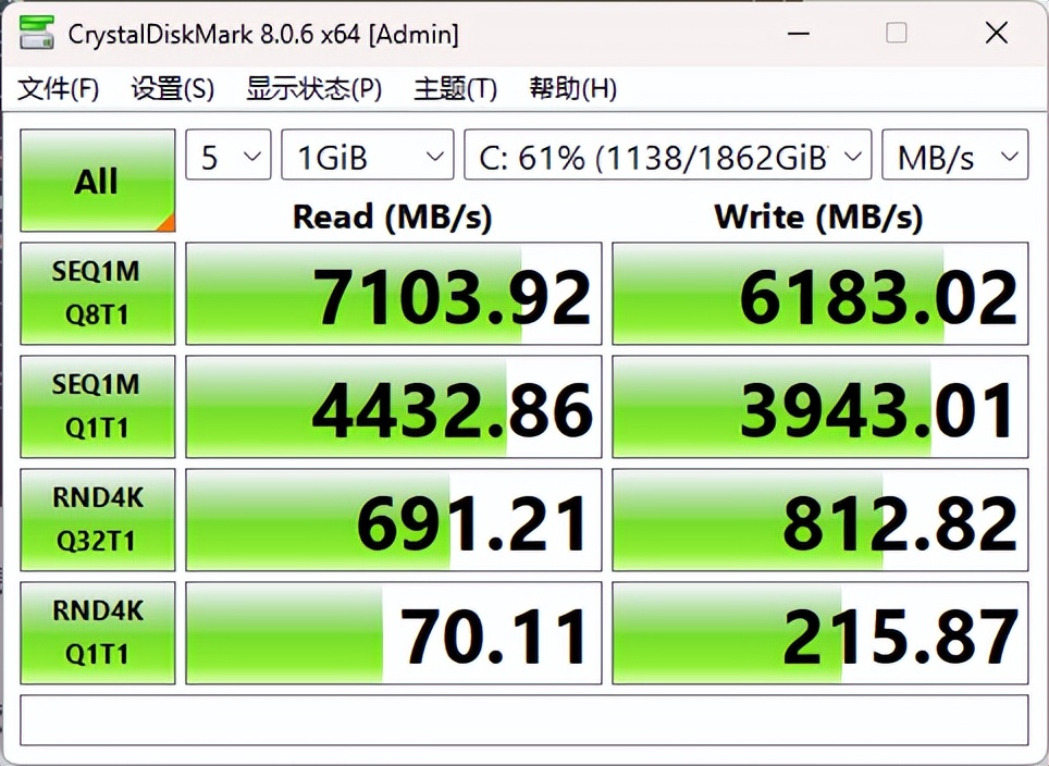 CrystalDiskMark测试成绩
