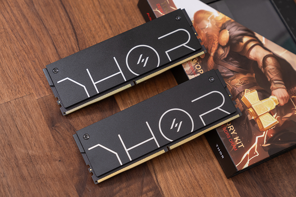 阿斯加特雷神索尔DDR5 6000极夜黑内存模组采用创新性暗黑无光美学体系,整体造型呈现低调内敛的视觉效果与卓越的工业质感。外壳采用黑色喷砂阳极氧化工艺结合精密金属加工技术,表面呈现出高端金属质感与细腻温润的触感特征。正面呈现醒目的"THOR"铭文标识,彰显产品独特的北欧神话主题基因。