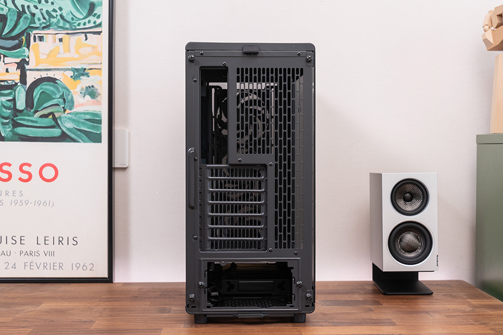 机箱背面设有合理的走线通道,并配备了固定扎带和橡胶圈,让装机者能够轻松整理线缆,保持机箱内部整洁,不仅提升了美观度,还有助于空气流通。