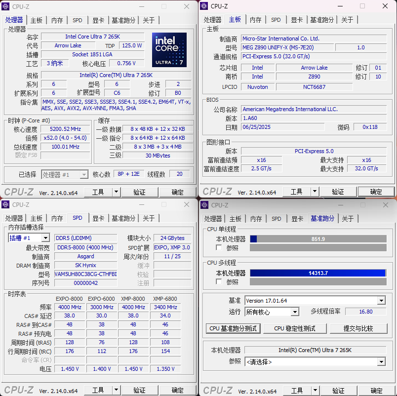 CPU-Z基本信息及BENCH成绩