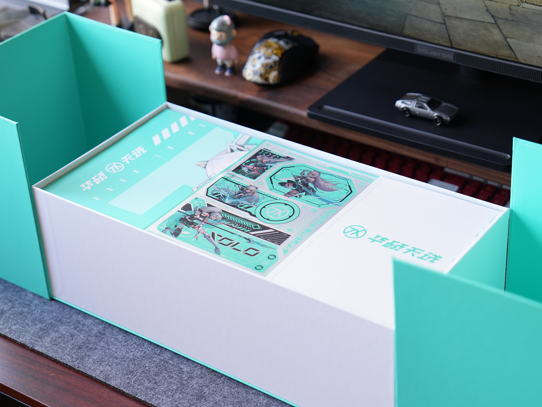 包装方面,依然是天选系列的一贯设计,白蓝搭配简约清新,天选姬也成为了这个系列的“首席代言人”,几乎所有的天选系列产品上都有她的身影。