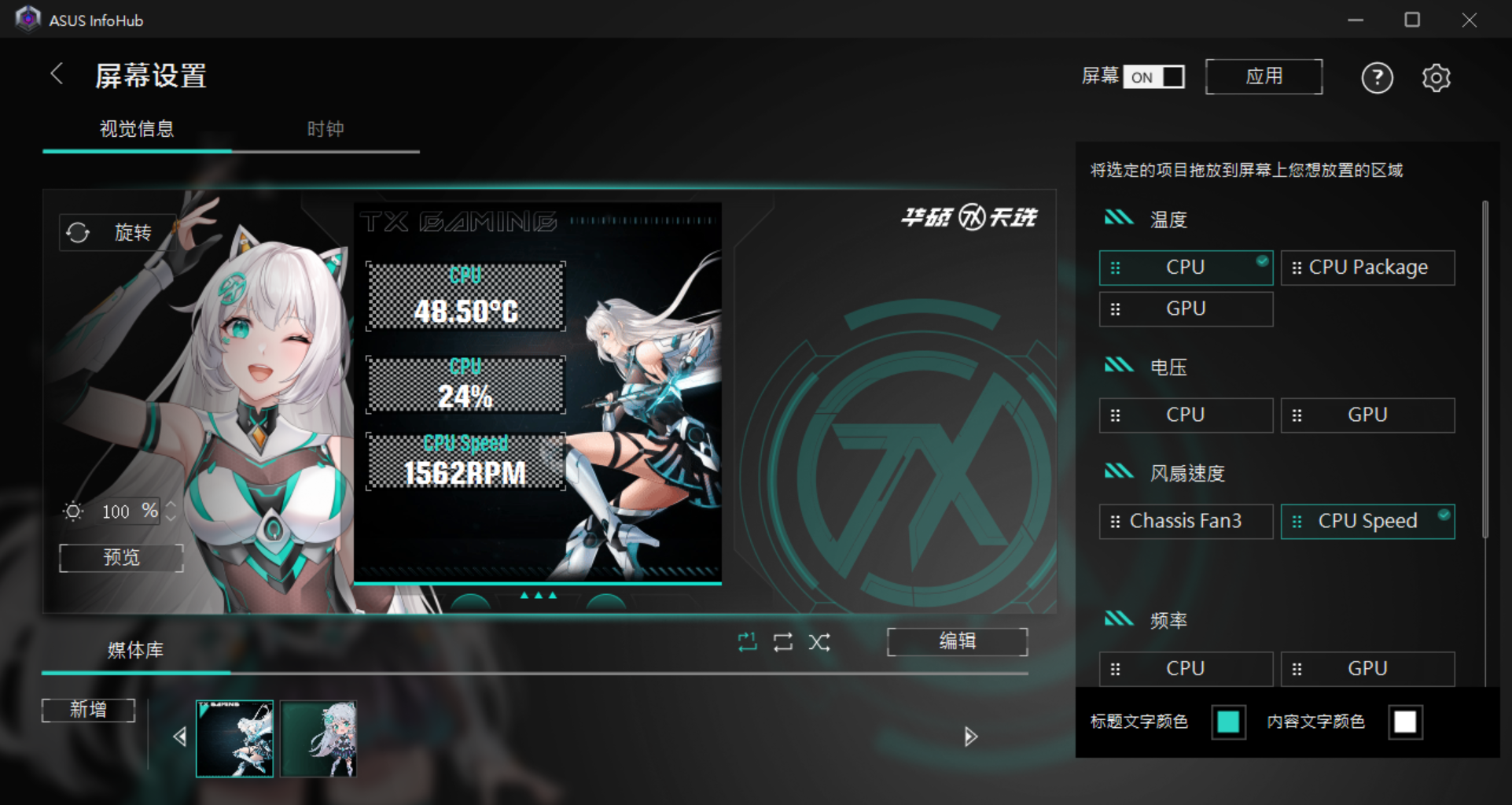 还记得冷头上的那块屏幕吗?华硕天选3代360一体式水冷的这块2.8英寸IPS材质屏幕的显示效果还是非常细腻的,它不仅可以作为时钟使用,显示当前日期和时间,而且可以作为电脑监控屏幕,显示温度、电压、风扇速度、频率等多种PC主机信息。