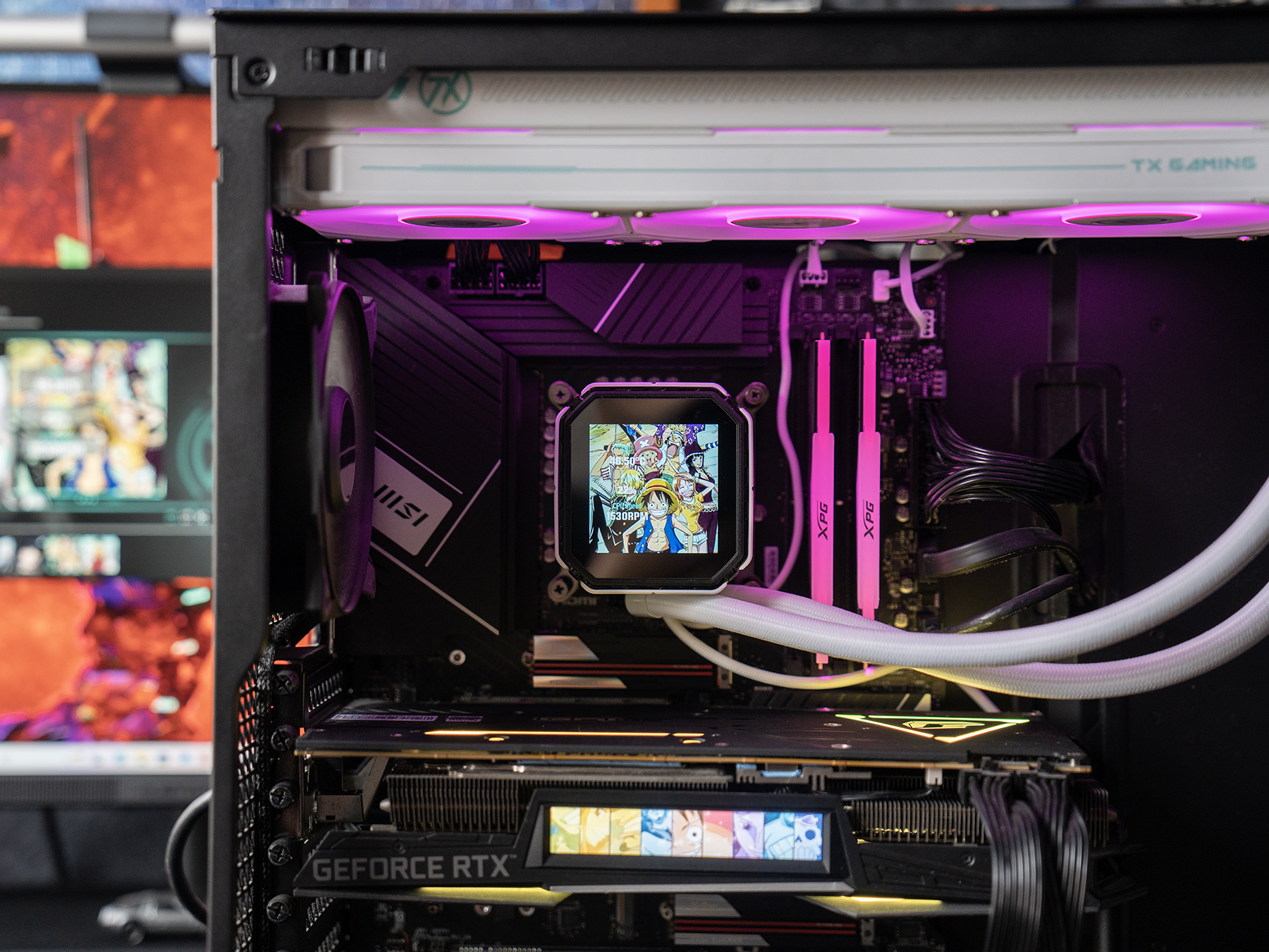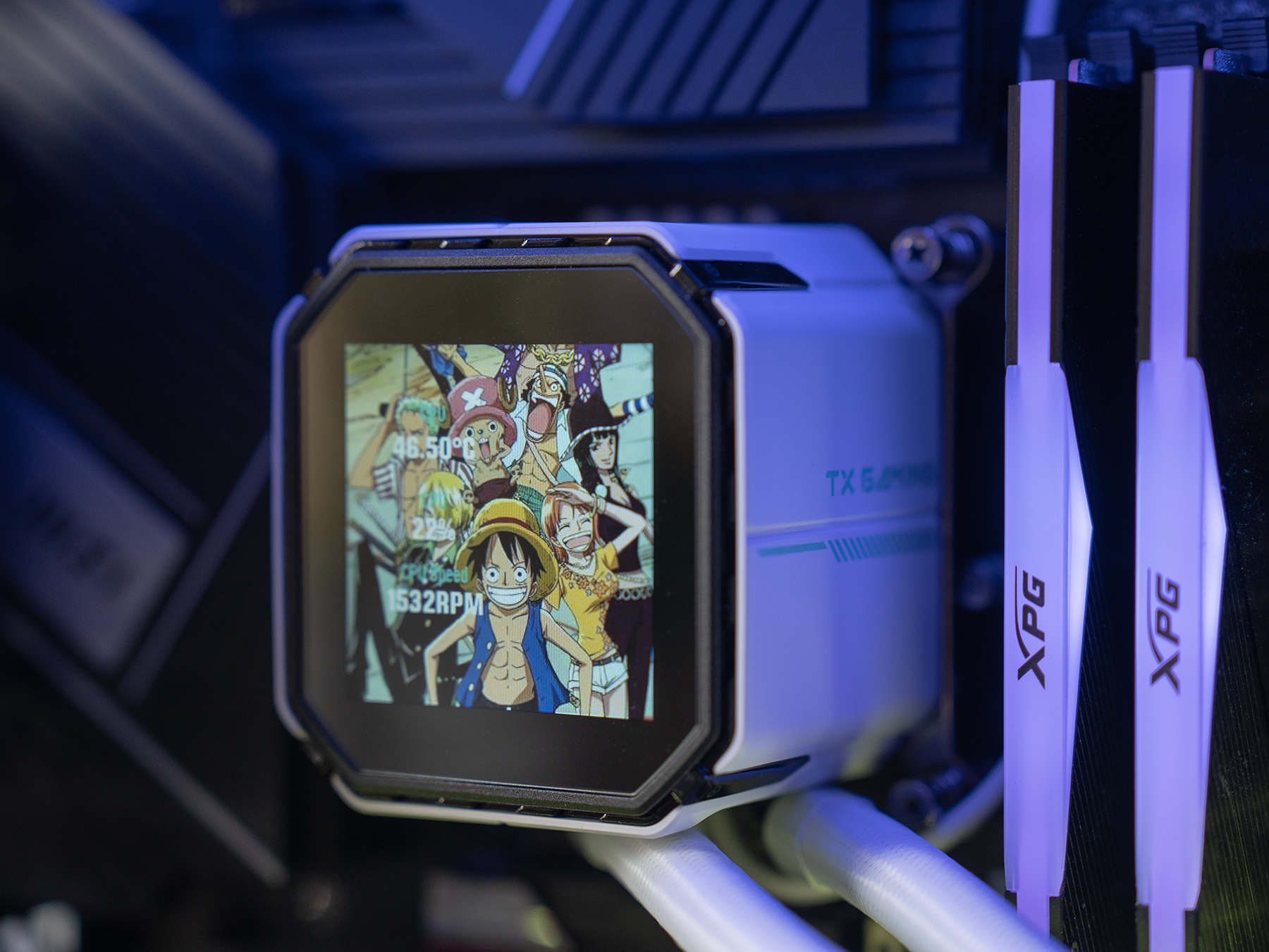 天选3代360一体式水冷的冷头正面设计了一块2.8英寸LCD屏幕,开机之后可以实时显示电脑的运行参数,并且支持软件自定义图片或动图,大家可以根据自己的喜好来设置。