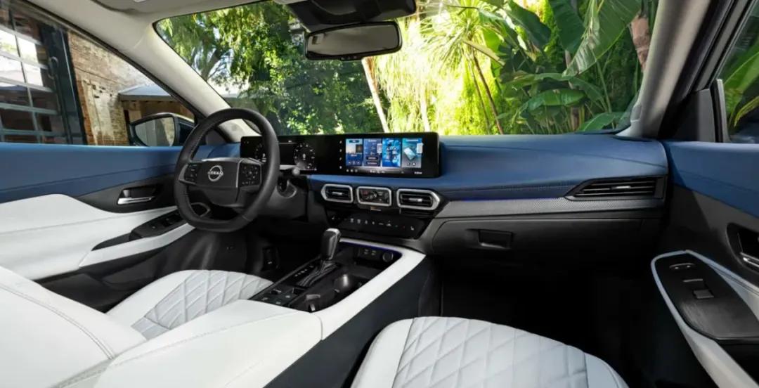 内饰还未曝光,预计同样会采用海外版全新轩逸的设计,而国产版有可能会根据中国消费者的需求进行些小幅度的调整,提供黑色和深浅双拼配色,中控台偏向驾驶者一侧,配备双幅多功能方向盘和传统样式挡杆,液晶仪表和中控屏组成了双联屏造型,内置了Nissan connect 2.0车机系统,支持语音控制、车联网、OTA升级、车载KTV、carplay、android auto手机无线连接等功能,车内大量采用了真皮材质覆盖,而且空调出风口换装了镀铬条包裹的筒型造型,营造了车内的豪华科技氛围。