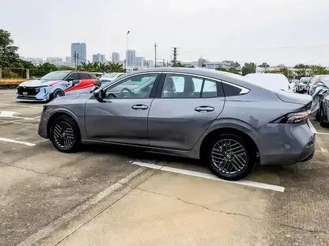 全新轩逸彻底摆脱了现款车型的圆润风格,采用日产最新家族式设计语言,前脸造型极具视觉冲击力。超大尺寸的前格栅与贯穿式饰板融为一体,以细腻的镀铬饰条勾勒边界,营造出 “无限延展” 的视觉效果,让车头更显宽大低趴。L 型日间行车灯造型犀利,与中央饰条无缝衔接,形成贯穿式光带,搭配深邃的 LED 大灯组,夜间点亮后辨识度拉满,运动气息扑面而来。